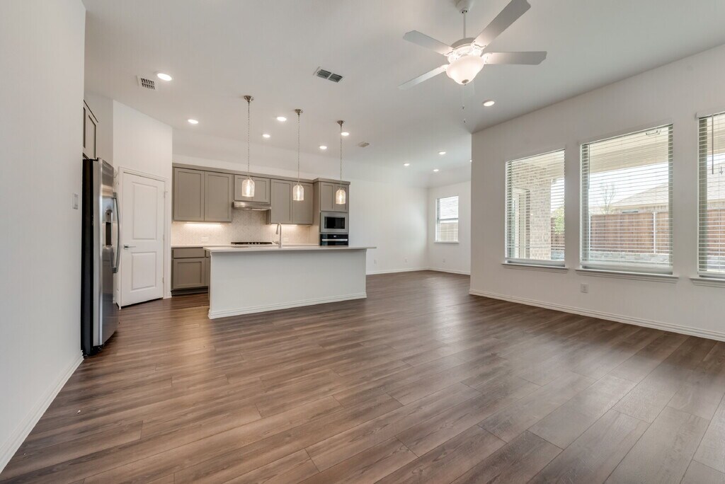 Welcome to your dream home in the charming Melissa! This leasing house boasts a cozy atmosphere with its brick walls and wood-style floors, complemented by luxurious ceiling lamps that add a touch of elegance to every room. Park your vehicles with ease in the spacious two-car garage featuring a single door entry. Step into the stylish kitchen equipped with sleek stainless steel appliances, pristine white countertops, and modern gray cabinets offering ample storage space. Each room is adorned with plush carpets and miniblinds, providing comfort and privacy for every occupant. Indulge in relaxation in the bathroom featuring a beautiful vanity and a soothing bathtub, perfect for unwinding after a long day. Cozy up by the fireplace on chilly evenings, or enjoy gatherings in the expansive backyard, ideal for outdoor entertaining and activities. Experience the comfort and luxury in this designed leasing house, where every detail is crafted to enhance your living experience.