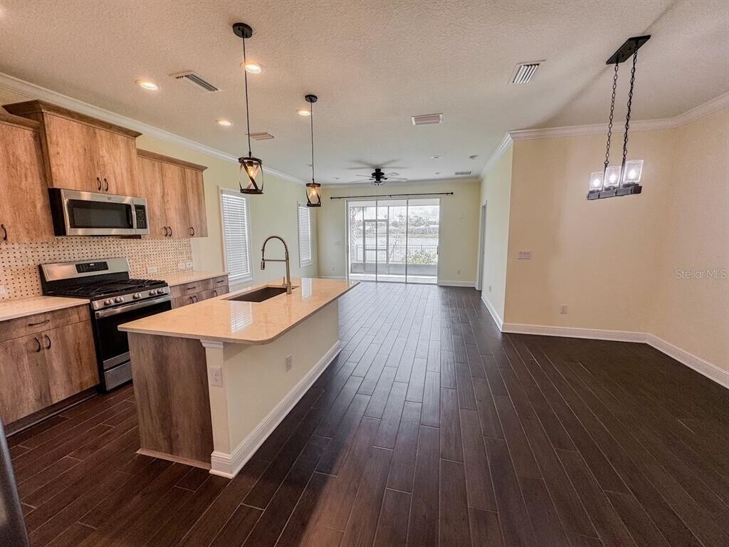 Gorgeous 3-Bedroom Home with Bonus Room & Stunning Lake Views in Silverleaf! Step into this nearly new,beautifully maintained 3-bedroom,2-bath home with a versatile bonus room,perfect for a home office,gym,or playroom. Inside,you’ll love the hardwood-style tile floors,open-concept layout,and modern kitchen featuring a gas stove,stainless steel appliances,and sleek finishes throughout. Relax outdoors on your spacious lanai overlooking a fenced backyard and a serene lake view — the ideal spot for morning coffee or evening sunsets. Located in the highly sought-after Silverleaf community,this home offers the perfect blend of nature,comfort,and convenience. Enjoy resort-style amenities at Club Silverleaf,including a state-of-the-art fitness center,sparkling pool and spa,playground,ballpark,picnic pavilions with grills,two dog parks,basketball courts,scenic walking trails,and a peaceful boardwalk shaded by majestic Florida oaks. Nestled between US-301 and Old Tampa Road,you’re just minutes from shopping,dining,and top-rated schools — making this home the perfect balance of luxury and lifestyle. MLS# A4667620