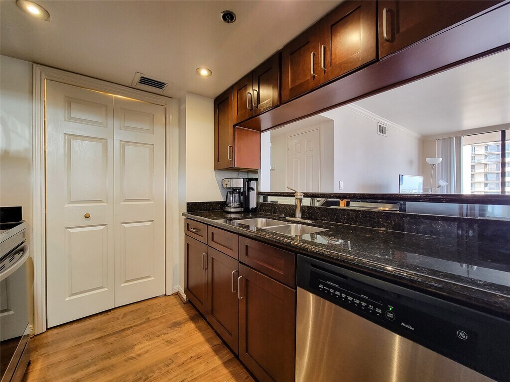 Beautiful well maintained one bedroom and one bathroom with overlooking view from the 12th floor in the Galleria area. Wood floor throughout,No Carpet. Kitchen with granite countertop and Stainless steel appliances. Large walk in closet in bedroom. Refrigerator,washer and dryer are included. Wonderful concierge service with meeting area,fitness center,party room,business center and outdoor oasis pool. Close to shopping,restaurants and bars. Easy access to highways. Ready to move in. MLS# 31750962