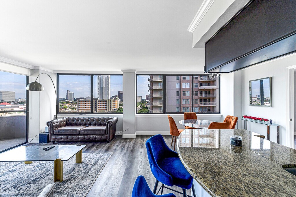 Experience elevated luxury living in the heart of the Galleria. This fully furnished,penthouse-style 3-bedroom residence with 3 full bathrooms offers an impressive 2,661 sq. ft. of sophisticated living space. 3 private balconies provide breathtaking panoramic views of the Houston skyline. Available for short-term lease,the home may be offered furnished/unfurnished as either a 3-bedroom or 2-bedroom configuration,depending on the client’s needs. 3 garage parking spaces add exceptional convenience. Rich wood flooring complemented by walls of windows that flood the home with natural light. The kitchen is thoughtfully designed for both style and functionality,featuring granite countertops. Residents enjoy an array of resort-style amenities,including a swimming pool,jacuzzi,billiards room,library,fitness center,elegant party room,and full concierge services. Corporate tenants and professional's welcome for short-term lease. MLS# 78179707