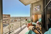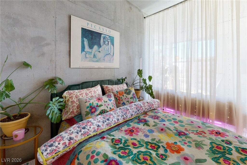 Welcome to your stylish retreat in the vibrant Art's District Downtown Las Vegas! New Years Special, 1 month free on 12 month lease if move in by 131/26! This beautifully furnished condo combines modern design with eclectic charm, offering the perfect balance of comfort & personality. The open living area boasts 10 ft. ceilings with floor to ceiling windows & panoramic city & mountain views and from the large private balcony off of the main living area. Kitchen has breakfast bar & granite counters, stainless appliances. Sectioned off bedroom area & walk in closet. Washer & dryer included. Experience the Amenities of Luxury High Rise Living with 24 hour Concierge, Two Level Fitness Center, Resort Style Pool and Spa with Cabanas, Secure Building Access, Outdoor movie theater & lounge area, and Garage Parking included! Enjoy local restaurants, coffee shops, galleries & nightlife just steps away at Arts District, Move right in! FURNISHINGS ARE OPTIONAL!!