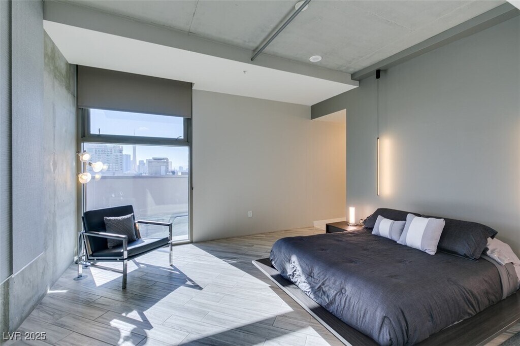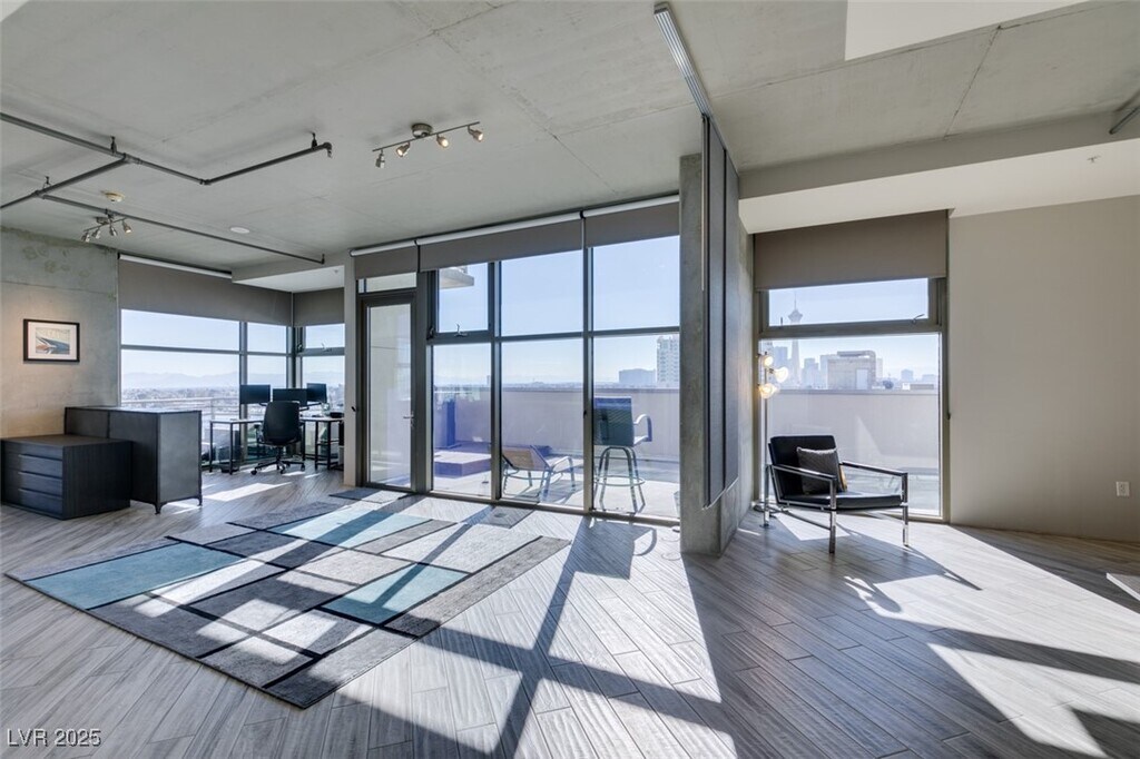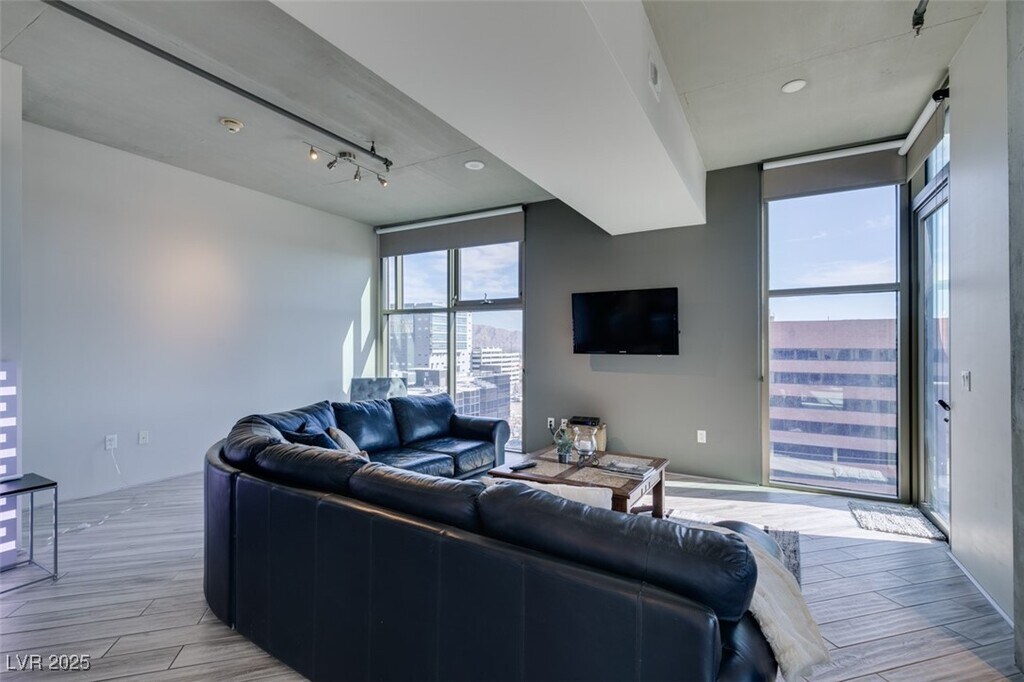 Experience Loft Style High Rise Living at its finest in this popular seventh-floor corner unit condo with breathtaking views of downtown, the valley, and mountains beyond. This one-bedroom unit features soaring ceilings, floor-to-ceiling windows, and a balcony that maximizes light and the stunning scenery. The condo is beautifully upgraded with roller shades, hardwood / tile floors, stainless steel appliances, and custom cabinets. Additional enhancements include fresh paint, granite countertops, modern light fixtures, and ceiling fans. The spacious bathroom offers dual sinks, a separate tub, and a shower. Located in Juhl’s Downtown Las Vegas, you’ll enjoy an unparalleled lifestyle with easy access to the Business, Arts, and Medical Districts, as well as top dining and shopping options. The building’s amenities include a resort-style pool and spa, rooftop terrace, alfresco movie theater, Vino Deck, working lounge, and a fitness center.