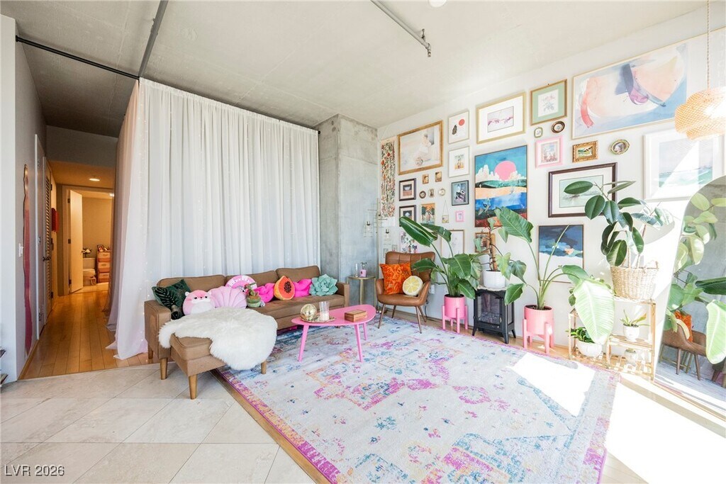 Large, open floorplan with tile throughout this 2 bedroom/2 bedroom condo. The Kitchen features granite countertops and stainless-steel appliances with breakfast bar open to great room with balcony. High ceilings with floor-to-ceiling windows maximize height, light and the amazing strip and sunset views. Juhl offers Ground-level shops & eateries, short distance to nightlife, public transportation. Close to the Art District, Medical District, Smith Center, Las Vegas Academy of Arts and more. Showings Start June 2nd.