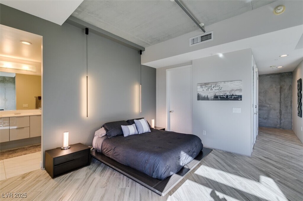 Experience the pinnacle of urban luxury in Juhl's penthouse 1406. This fully furnished, 2-bedroom, 2.5-bath residence offers breathtaking city and mountain views from floor-to-ceiling windows. A modern kitchen with stainless steel appliances flows into an open living space, crowned by a dual primary bedroom loft. Enjoy a spacious balcony, in-unit laundry, and Juhl's exceptional amenities: pool, gym, concierge, and parking. Perfectly situated in downtown Las Vegas's vibrant heart, this is sophisticated city living at its finest.