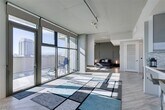 Views, views, and more views! Be wowed by the show-stopping downtown views this unit offers! It's rare to find true loft living that has a built-out primary bedroom! The primary features are a massive walk-in closet, a spa ensuite, and floor-to-ceiling views of the city! The living space is an open concept, boosting an eat-in kitchen, a formal dining space, a living room with a spacious balcony, a full bathroom, and a concrete wall partition perfect for a den or office space. Sleek tiled floors throughout. The kitchen is a chef's dream and features stainless steel appliances and a real gas range. This unit has been immaculately maintained! You'll also find a stackable laundry closet as well. All within a full-service luxury building with a resort-style pool, a two-story gym, an outdoor theater, a wine deck, a co-working space, and more!