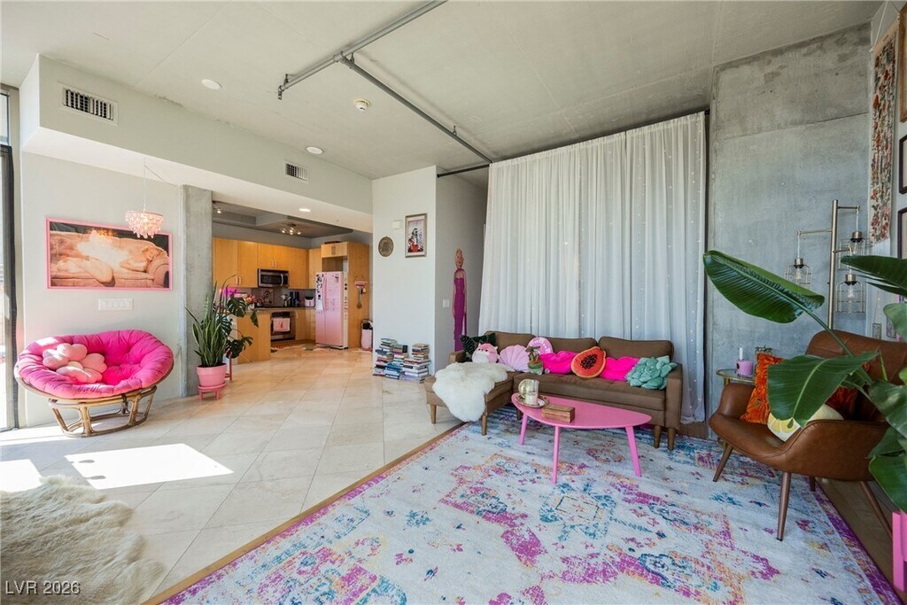 Stunning views from this open loft-style residence at JUHL in the heart of downtown Las Vegas. This modern unit offers an airy, open layout complemented by tile flooring throughout, stainless steel appliances, granite countertops, and an in-unit washer and dryer. JUHL delivers true luxury, resort-style living with premier amenities including a spectacular rooftop pool, heated spa, state-of-the-art fitness center, Vino Deck, private movie theater, and poolside grilling area. Located steps from downtown’s best dining, nightlife, arts, and entertainment, this home offers the perfect blend of style, convenience, and urban sophistication.