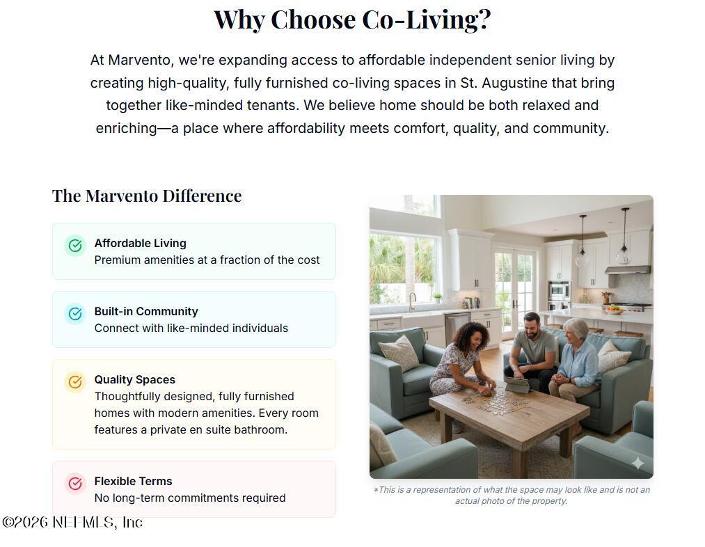 Unit A: Move in Special! - 1st 3 months discounted to $1000.00 Per Month. Brand New Construction fully furnished co-living space at 3540 Datura Street is Brand new construction & designed specifically for active seniors,offering comfort,convenience,and community in the heart of St. Augustine. intentionally fashioned to feel like home,beautifully finished,comfortable,and full of life,not like a facility. Each resident has a private ensuite bathroom,so you get privacy and independence,with real community right outside your door. Located near shopping,dining,cultural attractions,and close to senior care facilities,Flagler hospital & medical services. Everything you need is close by. -This is a Marvento Home- All Maintenance,High-speed internet,utilities,and amenities included. No-pet community for a clean,allergen-free home. Public transportation access,Home-cooked meal options available,Weekly housekeeping included,Affordable monthly rates. Month-to-month options MLS# 2142380
