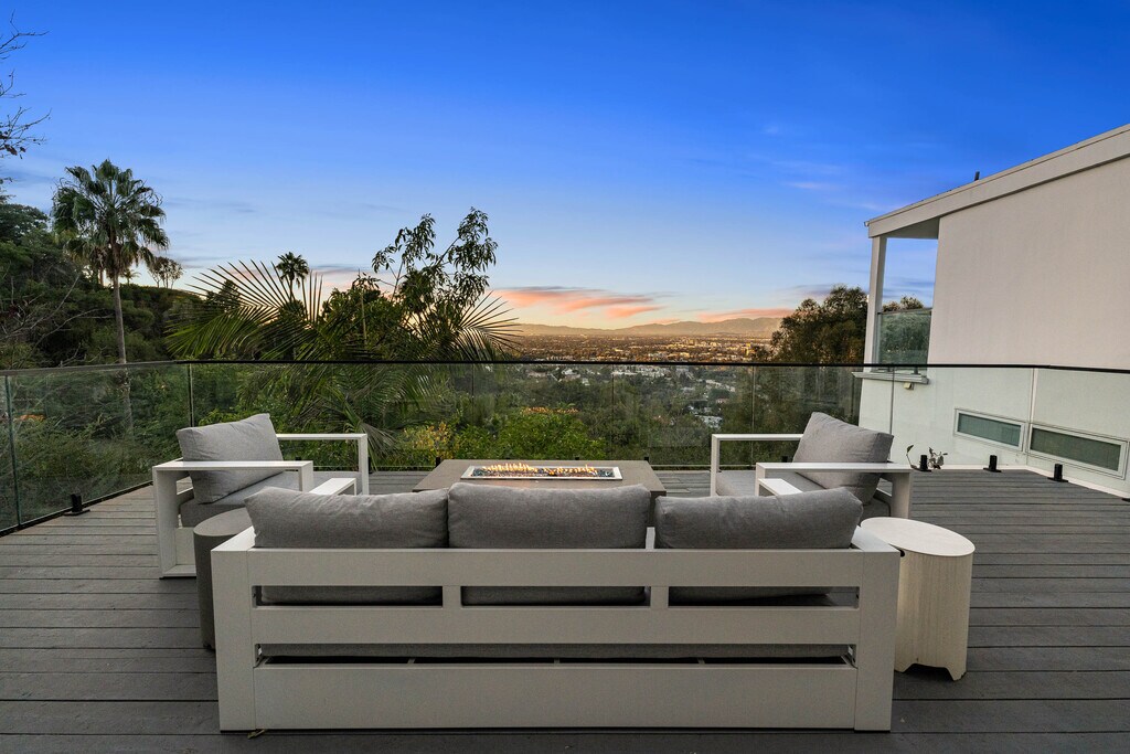Luxury Furnished Hillside Retreat with Views + Detached Guest House & Sauna | Hollywood Hills Welcome to your private hillside retreat at 3541 Multiview Drive, a beautifully renovated 4-bedroom, 3.5-bathroom, office, and 4 outdoor patios with sweeping views of Los Angeles. This residence is located in one of Los Angeles’ most desirable neighborhoods — the Hollywood Hills. This gated, fully furnished home offers rare privacy, sweeping views, and true retreat-style living just minutes from the city. Highlights -Fully renovated with modern finishes and an open-concept design - Expansive city and mountain views overlooking Studio City and the Santa Monica Mountains, with stunning sunsets from nearly every room - Fully furnished with curated luxury pieces, including: - Top-of-the-line massage chair - Tempur-Pedic and Beautyrest Black mattresses - Designer décor and furnishing throughout - Newly installed whole-home water filtration system, providing exceptionally clean, filtered, and drinkable soft water from every faucet throughout the property Entertainment-ready with: - 85-inch Smart TV in the living room - 70-inch TV in the primary suite - 4 spacious outdoor patios ideal for lounging, dining, and entertaining with panoramic canyon and city views - Chef’s kitchen with premium appliances, sleek cabinetry, and breakfast bar - Primary suite with en-suite spa bathroom, private terrace, and incredible skyline views - Private, gated, and fully walled property ensuring peace, security, and seclusion - Waterfall Fountain - Detached Guest House & Sauna Wellness Features: One bedroom is located in a fully detached guest house, offering excellent privacy for guests, family, or a home office. Guest house includes its own private sauna, creating a rare at-home wellness experience Prime Location Tucked just off Mulholland Drive, the home offers the perfect balance of privacy and convenience: - 5 minutes to Runyon Canyon hiking trails - 8 minutes to Universal Studios Hollywood - 10 minutes to Hollywood Bowl and Sunset Boulevard - 15 minutes to Beverly Hills and Downtown Studio City - Under 20 minutes to Burbank Airport (BUR) Nearby attractions include the Hollywood Sign Overlook, Lake Hollywood Park, and the iconic Mulholland Scenic Overlook. Property Features 4 Bedrooms | 3.5 Bathrooms Approx. 2,300 sq ft 4 outdoor patios with seating and views Central A/C & heat Washer & dryer in unit One-car garage parking EV charger available Additional driveway parking for 2 cars Additional street parking right next to our home for another 2 cars Quiet, private hillside street Ideal for corporate relocations, executives, creatives, or anyone seeking a fully furnished luxury residence in the heart of Los Angeles with a true retreat-in-the-city feel.