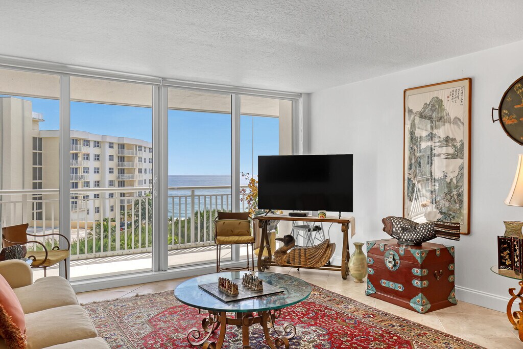 Direct Ocean-front private residence featuring panoramic ocean views and wrap-around balcony! Private Beach. Fully Furnished. Perfect winter retreat. You can work from anywhere, why not paradise? Fully stocked with all you need. This apartment is a home away from home, with everything you need for cooking and entertaining.Internet, Cable, and water included. Electric Car Chargers Available Onsite. Lock in your perfect seasonal spot and spend the winter in Paradise, lounging on our sandy beaches, or golfing on championship courses, shopping on Worth Avenue, dining in great restaurants, or theater at Kravis Center. Or just relax and watch the sunsets sitting on your large balcony. Service Pets allowed with extra pet deposit.This one is a home not just a rental!