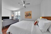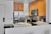 Feel at home in this fully furnished studio apartment in the heart of Mission Bay at Edgewater Apartments, offering upscale community living with modern conveniences and sophisticated design, just steps from San Francisco’s waterfront. This apartment is custom designed for the remote worker and includes a fully equipped kitchen, full bathroom, queen-size bed, ample storage, smart TV, stainless steel appliances, granite countertops and tile backsplash, wood plank flooring, in-unit washer and dryer, and a dishwasher. Residents can also enjoy access to a fitness center, co-working space and private conference rooms, a resident lounge, three landscaped courtyards with firepits and BBQs, a jacuzzi, secure package lockers, bike storage, controlled-access building, and on-site maintenance. Secure garage parking is available upon request and subject to fees, based on availability. Discover scenic trails, top-rated restaurants, cultural venues, and parks—all within walking distance. There is no air conditioning in this apartment. Internet speeds are not guaranteed and may fluctuate based on your computer model and the router location. Includes private high-speed internet, a standing desk, an ergonomic work chair, a 34-inch ultra-wide monitor, a microphone, a webcam, computer speakers, an LED streaming light, a keyboard, a mouse, a laptop stand, and a docking station. A laptop computer is not included. Partners reserve the right to conduct secure ID verification, background checks and request Proof of Income. Guests will have 24 hours to complete these steps. Booking confirmation is contingent upon the successful completion of these checks, as well as meeting the minimum eligibility requirements. [SI]
