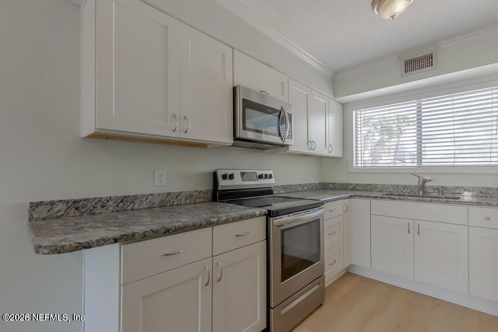 Beautiful townhouse for rent in the heart of South Jax Beach!! ** Unit A is a Large Fenced-In Corner Lot ** 2 bedrooms,1.5 bathrooms,1230 sq feet of maintenance free living space!! Within walking distance to shopping,restaurants & recreation & JUST 3 SHORT BLOCKS TO THE BEACH! Quiet neighborhood--beach life at its best! Renovated from top to bottom with all new stainless steel appliances,solid wood kitchen cabinets,granite counter tops,new bathrooms,wood burning fireplace,crown molding,newer hvac,laminate wood flooring and lots of closets & storage space. A balcony off each bedroom for optimum ocean breeze! Extra insulation in attic. Fenced back courtyard & partially covered patio. Lots of love & detail throughout this property! Assigned parking. This property comes with a washer and a dryer. Pets allowed with owner's permission. MLS# 2141032