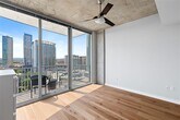 Situated on the 9th floor, this spacious and modern one-bedroom residence offers elevated high-rise living with resort-style amenities in one of downtown Austin’s most distinctive neighborhoods. Floor-to-ceiling windows frame expansive street views and open to an extended balcony more than 100 feet above the city—high enough to reduce street noise while keeping you connected to the vibrant Austin streetscape below. Concrete ceilings and structural pillars provide exceptional sound separation, enhancing the home’s quiet, industrial-inspired aesthetic. The kitchen features stainless steel appliances, granite countertops, rich wood cabinetry, and a breakfast bar ideal for casual dining or entertaining. Sweeping city views are captivating both day and night, and the elevated perspective offers a uniquely immersive experience during Central Texas thunderstorms. The residence includes a stacked washer and dryer, soaking tub, separate shower, large closet or office space, and a reserved parking space in the covered garage. Residents enjoy exclusive access to premium amenities, including a 24-hour concierge, a fully equipped fitness center, and a heated pool—conveniently located on the 9th floor. Additional shared spaces include an upscale resident lounge with a leather-trimmed theater, gaming area with pool table, bar and catering kitchen for entertaining, conference and media rooms for work or meetings, and an on-site dog park. Exceptional walkability places hike-and-bike trails, Town Lake, shopping, dining, entertainment venues, parks, and Whole Foods just steps away. This prime location offers effortless access to downtown Austin and an ideal blend of luxury, convenience, and urban lifestyle.