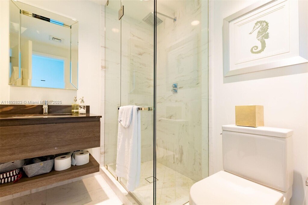 Stunning & unobstructed oceanfront & city views in this unique, tastefully decorated property at the exclusive Oceana in Key Biscayne. Unit features a spacious & practical layout 3B-4BA-Den-2,257 SF & private foyer/elevator entrance. All bedrooms have balcony access, on-suite bathrooms & walk-in closets. Marble floors throughout, high ceilings, electric shades & miscellaneous upgrades throughout. The kitchen features quartz counter tops, double oven, wine cooler & custom cabinetry. Additional rooms include a spacious den or office space & a maid's quarter/laundry room with a full bathroom inside & custom storage cabinetry. Exclusive resort-style amenities such as a beach restaurant with beach front service, sauna, pool, spa, a fully equipped gym & private tennis courts.