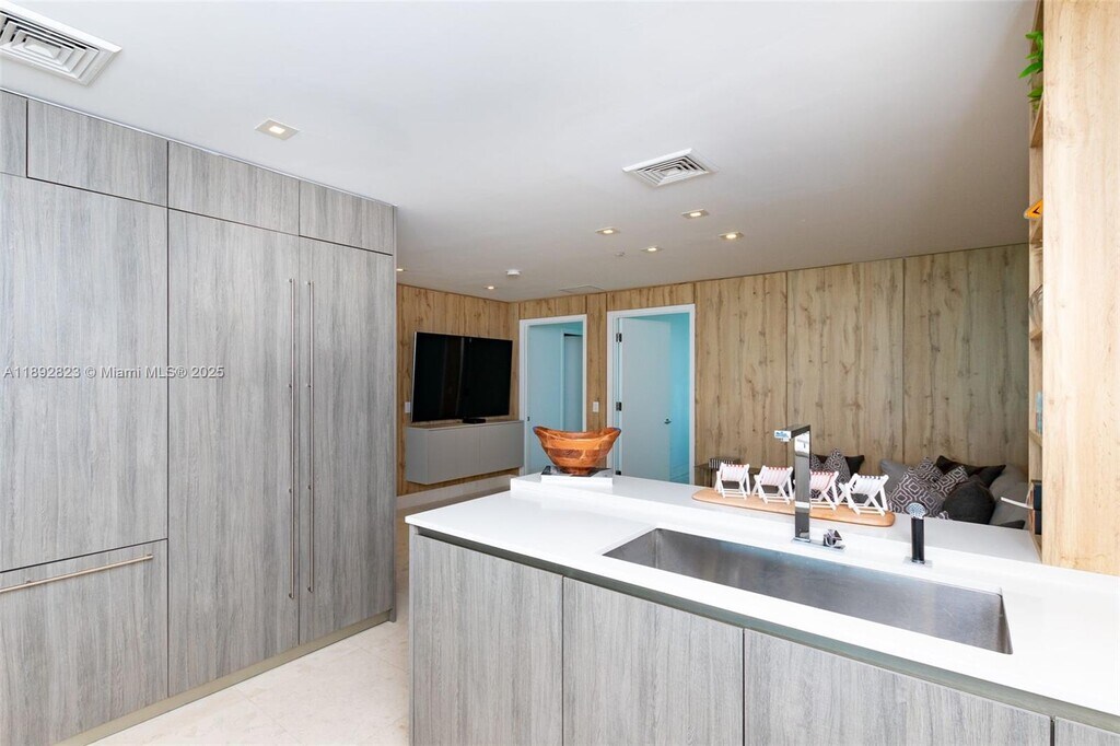 Stunning, unobstructed & tranquil oceanfront views in this unique, tastefully decorated unit at the exclusive Oceana in Key Biscayne. Unit features a spacious & practical layout 2B-3.5BA-Den-1,823 SF & private foyer/elevator entrance. Laundry room has been converted into a third bedroom with a full bathroom inside. Unit has been substantially renovated. Wooden floors throughout, high ceilings, electric shades & miscellaneous upgrades throughout. The kitchen features quartz countertops, double oven, wine cooler & custom cabinetry. Exclusive resort-style amenities such as a beach restaurant with beachfront service, sauna, pool, spa, a fully equipped gym & private tennis courts.