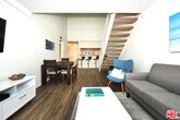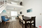 * MOVE-IN SPECIAL! * Welcome to your new home! This beautiful unit has everything your heart desires: Central AC, a full kitchen, open floor-plan with soaring ceilings... High-end laminate wood floors flow through the main level, while the stairs and the loft space [including an office that can be used as a 3rd bedroom] have soft carpet. The kitchen is equipped with fridge, dishwasher, and range. Both bedrooms have good closet space, and one bedroom features a balcony. For your convenience and peace of mind, the secure building features keypad entry and an onsite community laundry room. Parking is available for an additional fee, but the building is within easy walking distance of downtown Culver City shops & dining [including a fantastic weekly Farmer's Market], as well as bike path and public transport, including the Exposition train line. Owner will consider small pet with additional deposit. * The unit is available fully furnished at no additional charge, including Queen beds, linens & cookware, a TV, sofa & armchair, a dining table with seating for 4 or more, plus seating for the breakfast bar. * MOVE-IN SPECIAL: Contract rent is $3,650/mo - get $200 off each month for the first 12 months, with a 1-year lease! * MLS ID 26647755