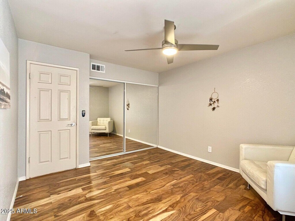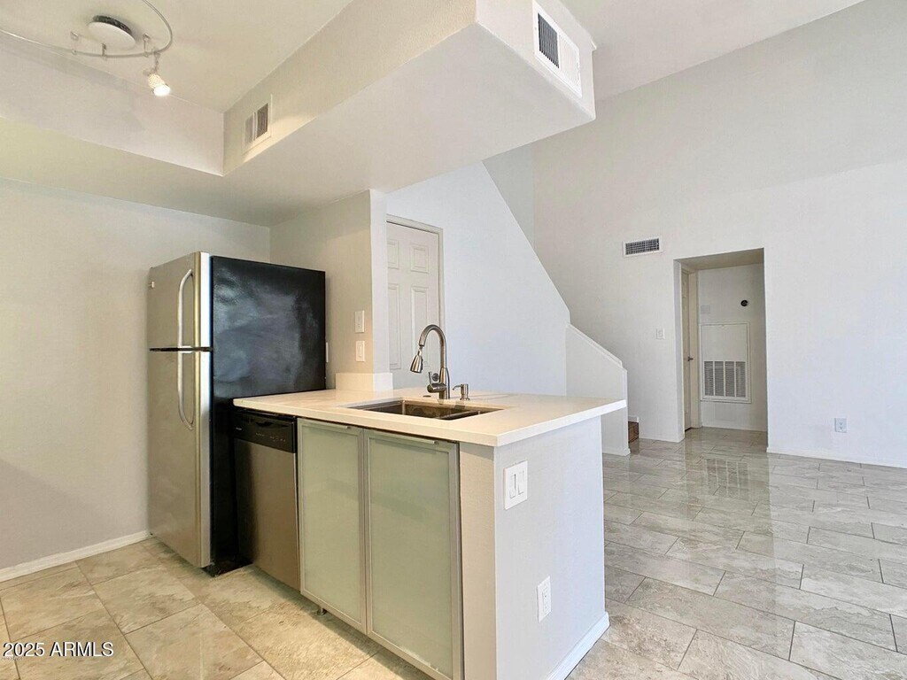 Fantastic Loft-Style Condo in Old Town Scottsdale,right on the Greenbelt! Soaring ceilings with a spacious Master Bedroom,loft-style with 2nd bedroom upstairs with gorgeous Acacia hardwood. Contemporary kitchen with frosted glass and white cabinetry,oversized stainless steel sink,fridge,dishwasher and slide in stove. Finished with Quartz countertops,unique mosaic tile backsplash and modern hood fan. Livingroom features porcelain tile flooring,new baseboards,nest thermostat and remote control ceiling fans. Bathroom has custom designed shower with glass doors and conveniently located laundry. Community features two heated pools,workout facility,yoga studio and movie theatre. Borders Continental Golf Course and is minutes away from parks,shopping and 20 mile greenbelt trail.