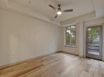 At 3600 South Lamar Blvd, Unit 202, impeccable design meets everyday comfort in this recently renovated residence. The open-concept layout creates an airy, expansive ambiance with the living, dining, and kitchen areas flowing seamlessly together. The space is anchored by a large sliding glass door that draws in abundant natural light, extending the space outdoors. In the kitchen, you’ll find high-end finishes and designer touches, including stainless steel appliances such as a wine fridge, stunning countertops and backsplash, and sleek wood cabinetry. Whether you’re preparing a casual dinner or hosting friends, this space makes every moment feel elevated. Your primary suite is a scene of tranquility and luxury. From the bedroom, slide open the door and step directly onto the covered terrace. Inside, the spa-like bathroom is beautifully detailed with elegant tile, a walk-in shower, a soaking tub, and dual sinks. A desirable in-unit washer and dryer add to the seamless, modern lifestyle you’ll enjoy. Enjoy access to community amenities, including the resort-style pool and spa. The South Lamar location truly puts Austin at your doorstep. In moments, you’ll discover a thriving corridor of neighborhood restaurants, shops, cafes, and entertainment venues. This home combines luxury and lifestyle in one of the city’s most dynamic neighborhoods.