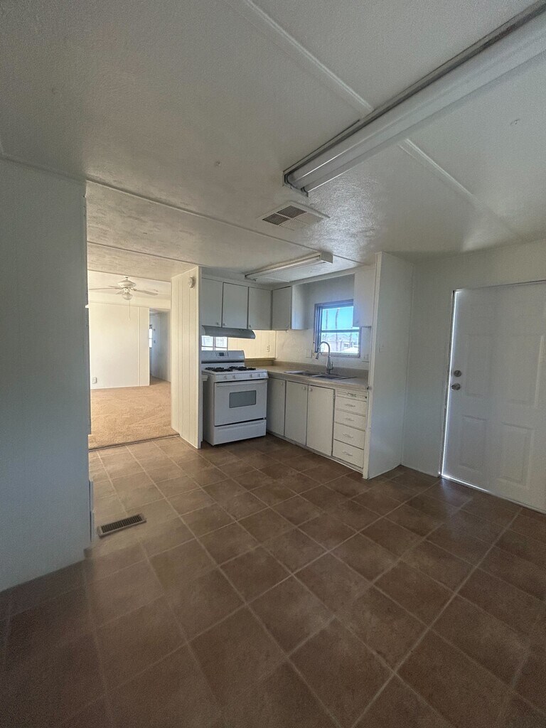 Welcome to Maycliff Estates in Las Vegas, Nevada where comfort and convenience come together in this manufactured home community. This residence offers two bedrooms and one bathroom across 720 square feet of well designed living space. The large kitchen features classic white cabinets with plenty of storage, a gas stove, a wall oven, a stainless dishwasher, and space for a dining table creating a perfect setting for both daily living and entertaining. The primary bedroom includes a closet and there is space for a stackable in unit laundry setup for added ease. A dedicated covered parking space provides protection for your vehicle and the home includes a wheelchair accessible ramp offering added accessibility. Maycliff Estates provides a welcoming community environment in a convenient Las Vegas location. Do not miss the chance to make this home yours. Schedule your tour today.