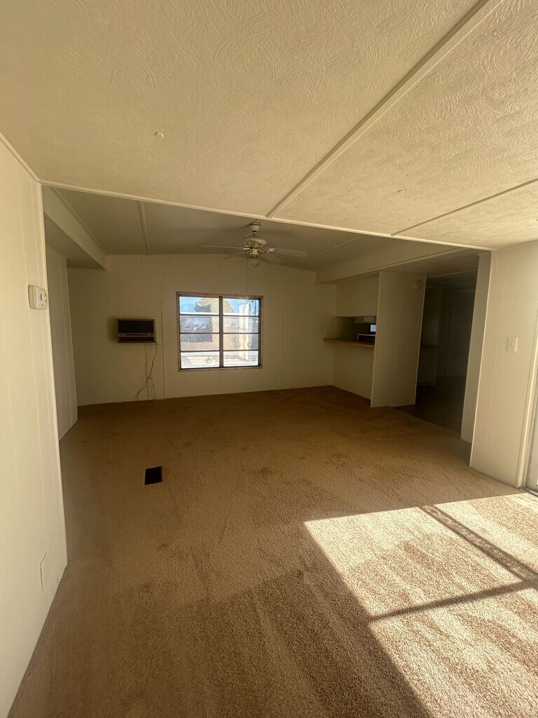 Welcome to Maycliff Estates in Las Vegas, NV. This manufactured home offers 2 bedrooms, 1 bathroom, and 784 sqft of comfortable living space. Step inside to an open concept living room that flows seamlessly into the kitchen, featuring white cabinets, a peninsula island, and a gas stove. The spacious primary bedroom includes a large closet, while the in unit laundry room adds everyday convenience. Enjoy peace of mind with dedicated covered parking and take advantage of the larger storage shed for all your extra belongings. Located in the welcoming Maycliff Estates community, this home blends comfort, practicality, and affordability in one great package. Do not miss this opportunity. Contact us today to schedule your private showing. This home is available now.