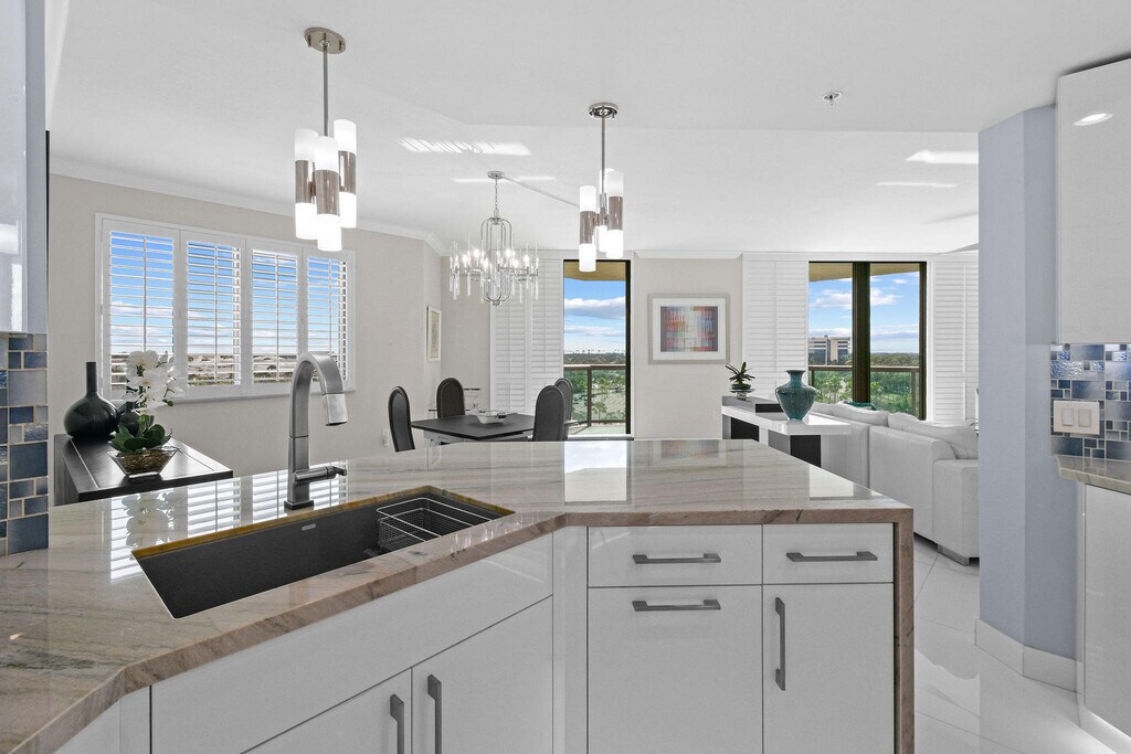 Luxury abounds in this meticulous residence at The Landmark -- Palm Beach Garden's most prestigious full-service building positioned within a minute's walk to the area's best dining & entertainment. Your retreat awaits with a spectacular redesigned kitchen featuring custom cabinets & appliances including a Thermador induction cooktop and a 42'' Sub-Zero refrigerator. Interior enhancements include 30'' diagonal porcelain tile, plantation shutters, impact windows & doors, crown molding, solid-core doors, & modern lighting & fans. The primary bath is a serene retreat w/ a jetted tub, double vanity, Toto Neorest toilet & marble tile. The home has custom built-ins in every closet, & an office complete w/ built-in desk & Murphy bed. Residents of this full-service building enjoy valet, a manned