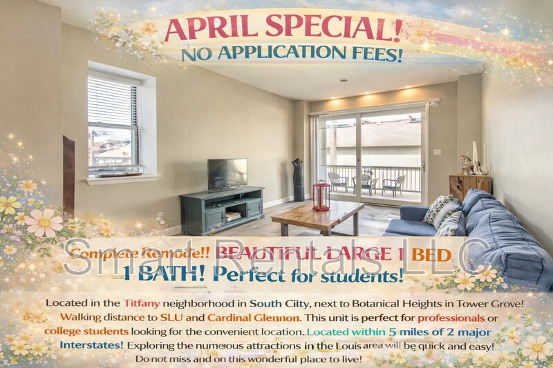 APRIL SPECIAL NO APPLICATION FEES Complete remodel! BEAUTIFUL LARGE 1 BED 1 BATH! Perfect for students! Open house Wednesdays at 12-12:30pm, Call Stella at today to schedule your showing! This home has it ALL! In this secure building, this unit features a Google Mini Home System, with thermostat NEST, 1 enclosed garage parking spot, secured swimming pool, brand new deck, washer and dryer in basement! Professionally managed. Located in the Tiffany neighborhood in South City, next to Botanical Heights in Tower Grove! Walking distance to SLU and Cardinal Glennon. This unit is perfect for professionals or college students looking for the convenient location. Located within 5 miles of 2 major Interstates! Exploring the numerous attractions in the St. Louis area will be quick and easy! Do not miss out on this wonderful place to live! Cats and Dogs Allowed. QUALIFICATIONS: NO Evictions NO Felonies Income must be 3 times the rent amount per month ***Additional $99/month towards water, sewer and trash, maintenance, high speed internet. TENANT RESPONSIBLE FOR GAS AND ELECTRIC*** INCLUDED IN RENT: -Washer and Dryer -Enclosed garage -Secured pool To apply and for showings please visit our website at