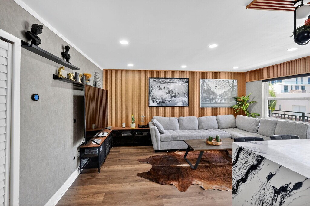 Furnished, fully upgraded 1BD/1BA in SoFi 2 blocks from the beach. Impact windows/doors, soundproof insulation, acoustic panels, waterproof flooring, crown molding & LED lighting. Custom kitchen, granite & high end appliances. Italian tile bath. In unit Washer/Dryer, smart home system, blackout shades. Controlled access elevator. Gated building & planned fitness room. Walk to South Pointe Park & top dining