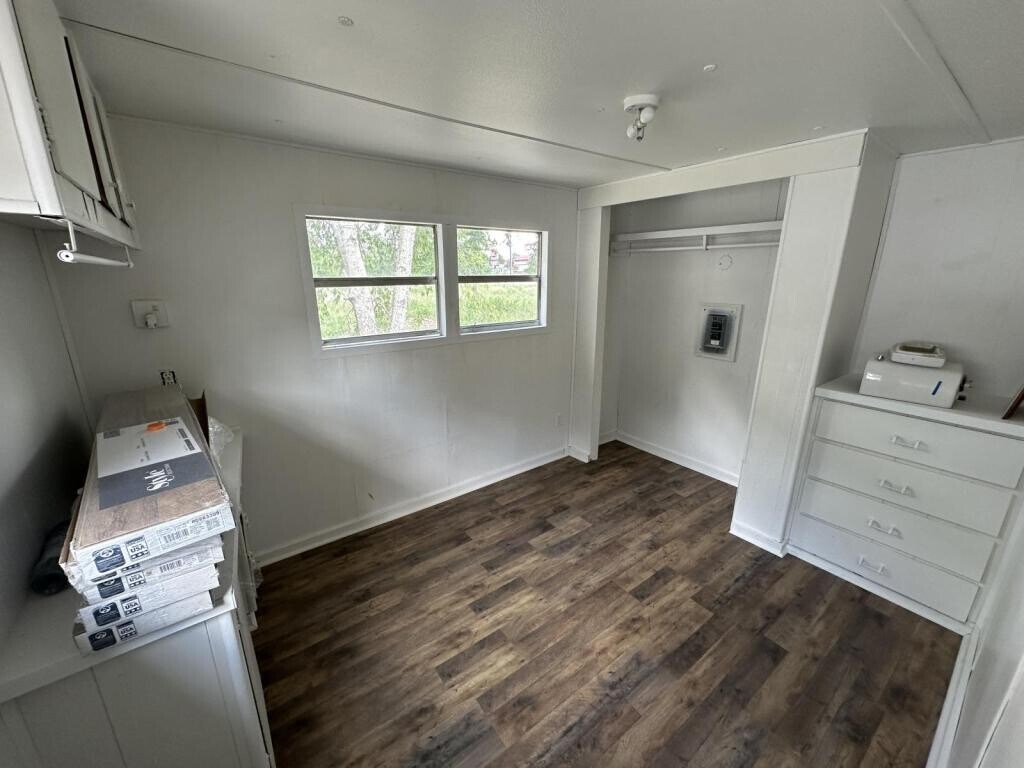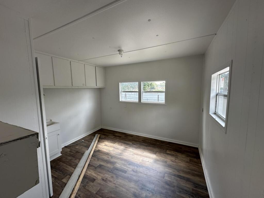 This two bedroom one bath is available now! Tucked back into the corner of the mobile home park it offers a great place to live under the shade trees.