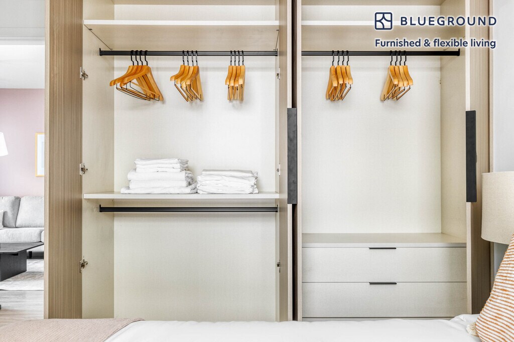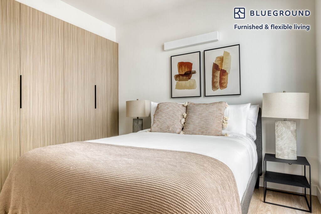 Feel at home wherever you choose to live with Blueground. You’ll love this cozy Palms furnished two bedroom apartment with its modern decor, fully equipped kitchen, and cheery living room. Ideally located, you’re close to all the best that Los Angeles has to offer! (ID #LAX994) The advertised rate of $4,400/month is the lowest available price, based on a 6 month(s) and 5 day(s) stay with a move-in date of April 1, 2026. If you’re looking for a 1-year stay, the rate is $4,770/month. Rates vary depending on the duration of stay, season, and other parameters. For exact pricing and additional pricing components, please visit our website and enter your desired move-in and move-out dates. The rate is applicable when billed upfront; it can be higher if billed in multiple payments. Brokers are welcome to reach out. Were you looking for an unfurnished lease? Try Blueground instead and upgrade from unfurnished to furnished living: - Furnished at rates comparable to unfurnished - No setup or furniture costs - save thousands - Move-in ready - save time, just bring your suitcase Designed with you in mind As with any Blueground apartment, you’ll find a thoughtfully designed space complete with beautiful furniture and a fully equipped kitchen in this two bedroom property. And, thanks to our superior quality mattresses, fully stocked linens, and towels, you can relax knowing you’ll always feel comfortably at home. When you’re ready for some fun, you can take in the Los Angeles vibes or bring the entertainment to you with the premium wireless speaker or smart TV. This apartment also offers in-apartment laundry. Sleeping arrangements King Bed, 70.8in/180cm Queen Bed, 63in/160cm Amenities Building amenities unique to this two bedroom apartment include an on-site: - Dryer - Elevator - Swimming pool - Washing machine - Lounge - Parking - Pets allowed - Rooftop BBQ Arrival and ongoing support The entire apartment is yours to enjoy! Throughout your stay, you’ll have access to our Client Experience team through the Blueground App. You can schedule additional cleanings, submit maintenance requests, and view our neighborhood recommendations with just a few taps. We’ll share all details upon confirmation of your stay. Other things to note Building amenities may have an extra cost. This Blueground apartment has flexible lease options, allowing you to book it for one month, a year, or more. Pets are welcome, though weight limits and breed restrictions apply and may incur fees. Parking is offered based on availability and is subject to a fee. We take great pride in ensuring every photo displayed is shot in our own units with our actual furnishings. That said, we regularly refresh our decor and furniture arrangement, which may differ from what’s pictured. [PL]