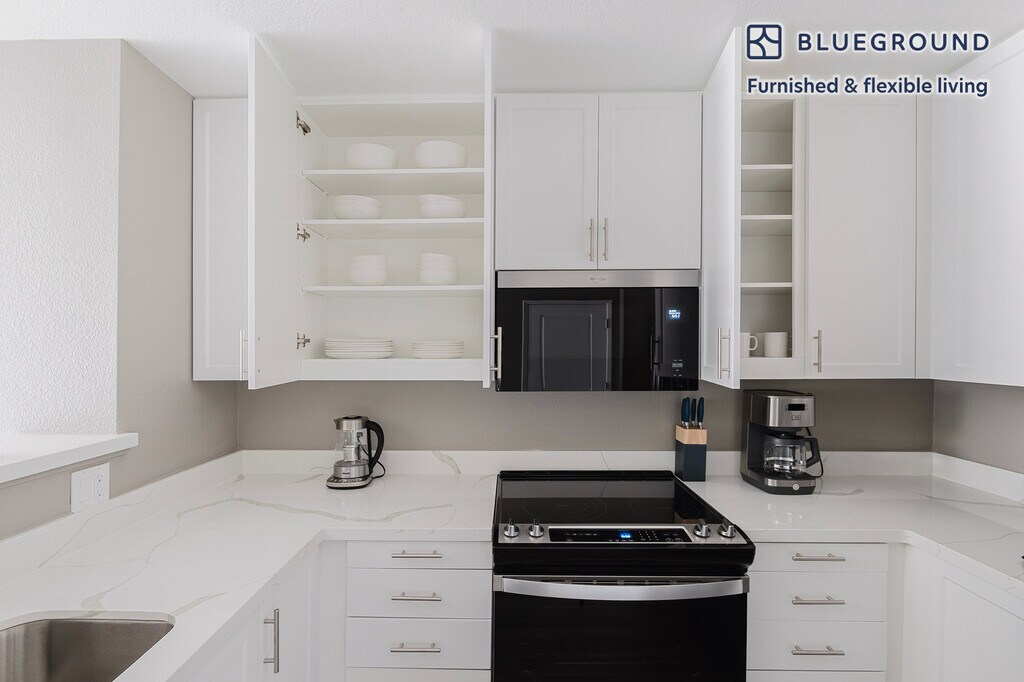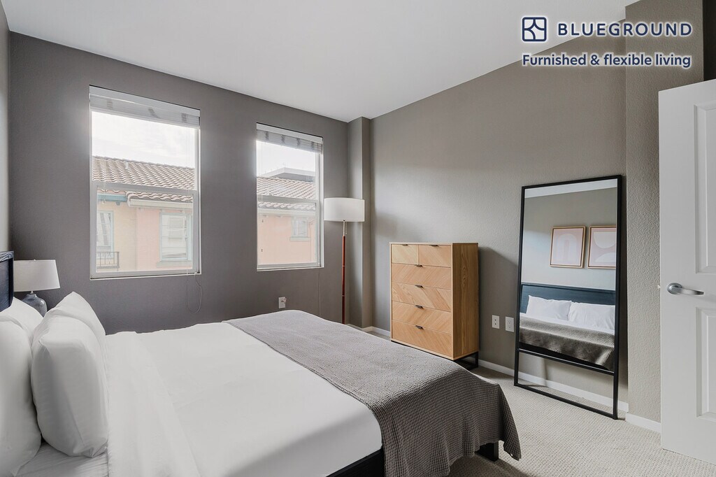 Feel at home wherever you choose to live with Blueground. You’ll love this sophisticated Valley Fair furnished one bedroom apartment with its modern decor, fully equipped kitchen, and exquisite living room. Ideally located, you’re close to all the best that San Jose has to offer! (ID #SFO1756) The advertised rate of $3,610/month is the lowest available price, based on a 2 month(s) and 2 day(s) stay with a move-in date of February 13, 2026. If you’re looking for a 1-year stay, the rate is $3,990/month. Rates vary depending on the duration of stay, season, and other parameters. For exact pricing and additional pricing components, please visit our website and enter your desired move-in and move-out dates. The rate is applicable when billed upfront; it can be higher if billed in multiple payments. Brokers are welcome to reach out. Were you looking for an unfurnished lease? Try Blueground instead and upgrade from unfurnished to furnished living: - Furnished at rates comparable to unfurnished - No setup or furniture costs - save thousands - Move-in ready - save time, just bring your suitcase Designed with you in mind Thoughtfully designed with bespoke finishes, modern furnishings, and a fully equipped kitchen, you’ll enjoy that “I’m home” feeling with this Blueground apartment. Whether you’re lounging in your beautiful living room streaming the latest and greatest entertainment on the smart TV or premium wireless speaker, or getting some well-earned rest on the superior quality mattress with luxury linens, you’ll fall in love with everything this Valley Fair apartment has to offer. This apartment also offers in-apartment laundry. Sleeping arrangements King Bed, 70.8in/180cm Amenities Building amenities unique to this one bedroom apartment include an on-site: - BBQ Area - Dryer - Elevator - Swimming pool - Washing machine - Parking - Pets allowed Arrival and ongoing support The entire apartment is yours to enjoy! Throughout your stay, you’ll have access to our Client Experience team through the Blueground App. You can schedule additional cleanings, submit maintenance requests, and view our neighborhood recommendations with just a few taps. We’ll share all details upon confirmation of your stay. Other things to note Building amenities may have an extra cost. This Blueground apartment has flexible lease options, allowing you to book it for one month, a year, or more. Pets are welcome, though weight limits and breed restrictions apply and may incur fees. Parking is offered based on availability and is subject to a fee. We take great pride in ensuring every photo displayed is shot in our own units with our actual furnishings. That said, we regularly refresh our decor and furniture arrangement, which may differ from what’s pictured. Also note - This apartment's central location means it can be noisy at times [SI]