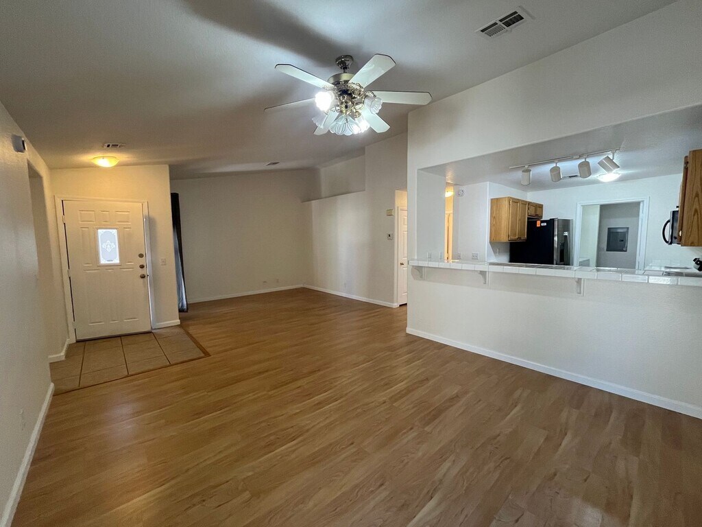 This spacious home is over 1100 sqft and complete with vaulted ceilings, ceiling fans, wood and tile flooring in living areas, carpet in the bedrooms, all appliances including washer and dryer, and an attached one car garage. All this is located in the gated and very well maintained Sunhampton Community. Conveniently located off of Tenaya and Gowan. Contact Khristina directly at for more information or to schedule your private viewing! Application - $100 Admin Fee - $150
