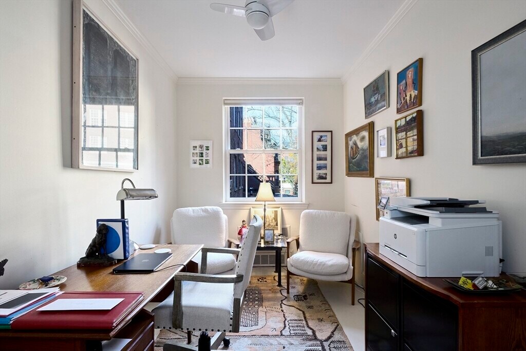 Large,spacious condominium with views of the Boston Common and Public Gardens. This lovely home offers one bedroom and a den/library. Kitchen and Bathroom have been updated. Good storage within and private designated storage in the basement. Bedroom is large with a walk-in closet and views of the Hidden Gardens of Beacon Hill! Lobby concierge from 8:00 AM to 2:00 PM Monday through Friday. Beautiful common roof deck with views of the Charles River,Back Bay and beyond. MLS# 73469341
