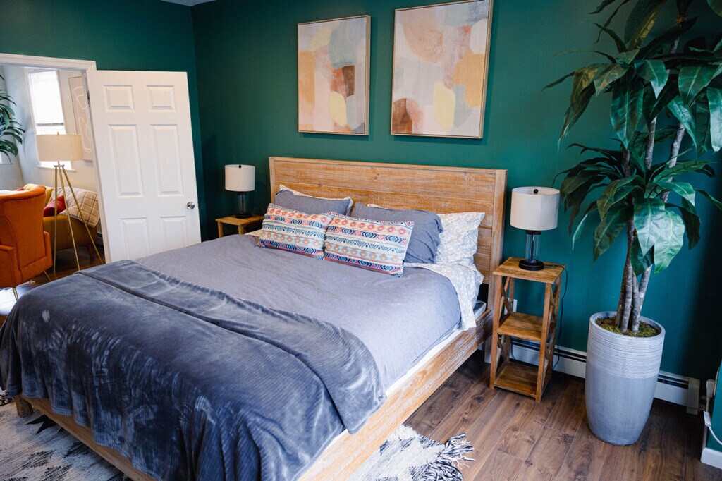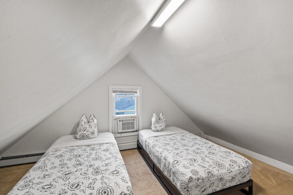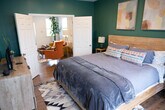 Feel at home in this peaceful four-bedroom, two-bathroom duplex located on the second and third floor. The space is accessible via a 16-step walk-up to the main living area. With its airy layout and lush greenery, this duplex is perfect for families and friends looking for a peaceful retreat. On the main floor, you will find a luxurious master bedroom complete with an attached ensuite bathroom. You can also relax in the stylish family room, which boasts a 65” TV, as well as a selection of board games and plenty of books in the library. Here, you will also find a comfortable Cloud sectional for an additional guest. You will also enjoy whipping up your favorite meals in the fully equipped kitchen designed for large groups. The third floor features three more bedrooms. If you're traveling by car, free parking is available at the parking garage around the corner with a guest permit. Additional parking spots for your group can be arranged. Centrally located, this home is close to Cape Liberty Cruise Port, Newark Airport, and Manhattan. With bus routes and light rail nearby, the possibilities are endless. The home is nestled in a vibrant neighborhood, where you can easily explore nearby coffee shops, restaurants, and corner stores on foot. The light rail, just 5 blocks away, provides access to downtown Bayonne, Jersey City, Hoboken, or even NYC. The sidewalks of Bayonne are abundant and perfect for leisurely strolls. Several bus stops are just a stone's throw away. Quiet hours are after 9pm. No more than 13 guests are allowed on the property and this is strictly enforced. A $500 party fee will be assessed for any unauthorized party or event. If you do not return your parking pass at the time of checkout, you will be charged a fine of $25. Smoking is prohibited on the property and a $500 smoking fine applies. The remote key for the parking lot is on the table in the living room. Ensure you return it to the same place after your stay, as a $500 fee will be charged for any unreturned or lost remotes.