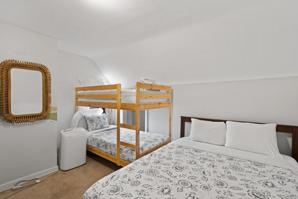 Feel at home in this peaceful four-bedroom, two-bathroom duplex on the 2nd and 3rd floors of a beautiful Bayonne home. This apartment offers plenty of room for groups. The main level (2nd floor) features a luxurious master bedroom with king-size bed and en-suite bath, a stylish family room with a 65” smart TV, board games, a library, and a Cloud sectional for extra sleeping space, and a fully equipped kitchen designed for cooking for large groups. The upper level (3rd floor) includes bedroom 1 with a king-size bed and a twin-over-full bunk, bedroom 2 with a queen-size bed and twin bunk beds, and bedroom 3 with two twin beds. There is plenty of comfortable bedding for everyone to sleep soundly. A guest permit is provided for free parking at a nearby garage. Street parking is free but can be tight at night. This home is in a vibrant, walkable neighborhood with coffee shops, restaurants, and corner stores just steps away. Stroll Bayonne’s tree-lined sidewalks, or hop on the light rail to explore Jersey City, Hoboken, or head straight into Manhattan. Major attractions like the Statue of Liberty, Jersey Gardens Outlet Mall, and American Dream Theme & Water Parks are all within a short drive. Cape Liberty Cruise Port is 5 min away, Statue of Liberty ferries are 10 min away, Newark Airport is 15 min away, Jersey Gardens Outlet Mall is 15 min away, American Dream / Nickelodeon Universe / DreamWorks Water Park are 20 min away, and Downtown Manhattan is 25 min drive or 45 min by public transport. Quiet hours are after 9pm. A $500 party fee will be assessed for any unauthorized party or event. If you do not return your parking pass at the time of checkout, you will be charged a fine of $25. A $500 smoking fine applies; please avoid smoking in the property. If the remote key for the parking lot is not returned to its place on the table in the living room after your stay, a $500 fee will be charged for any unreturned or lost remotes.