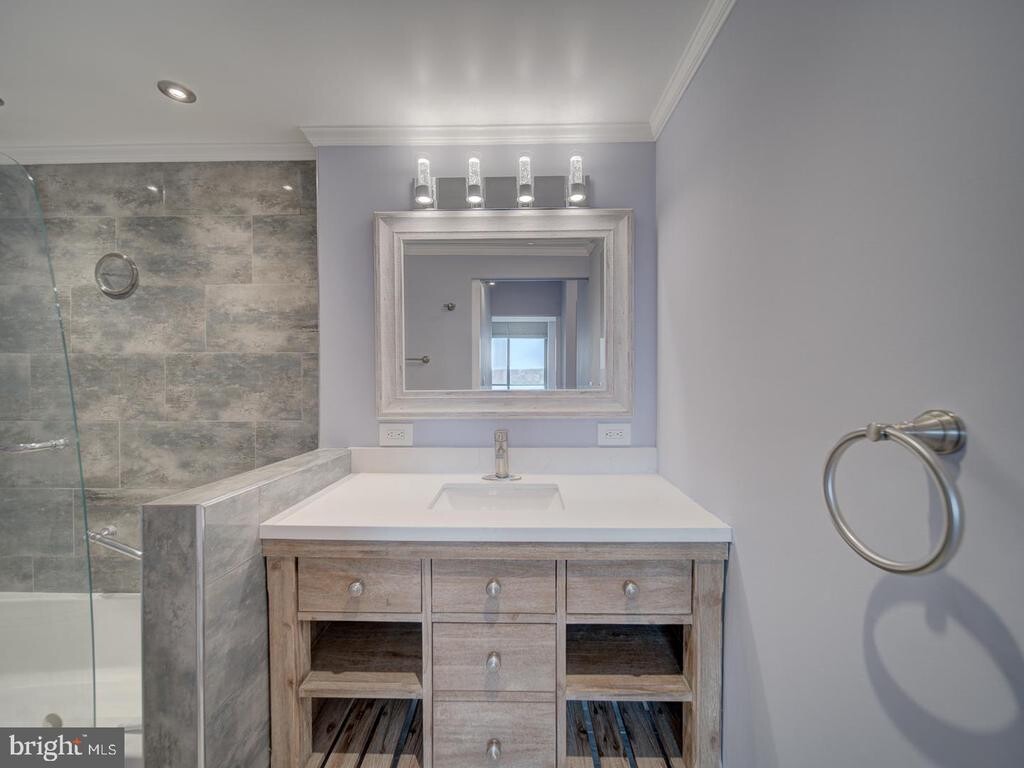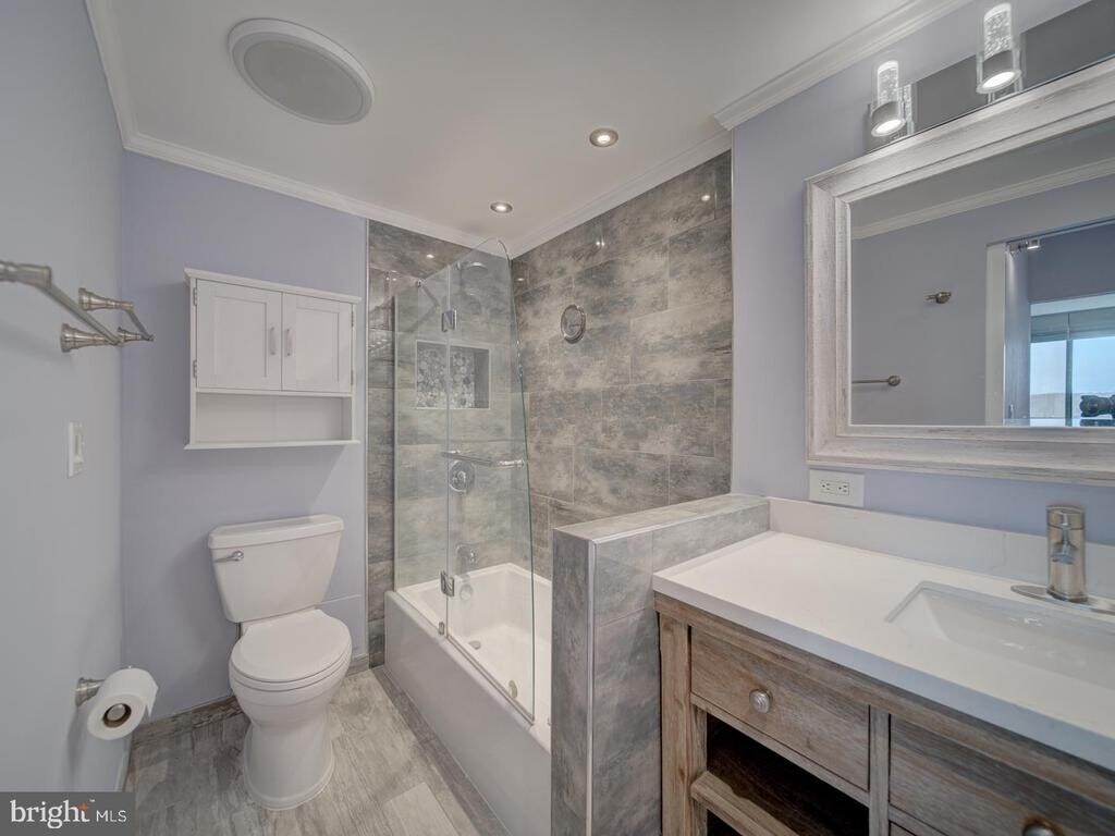 Beautifully and completely renovated 2 bedroom, 2 full bath condo with 2 assigned and deeded garage parking spaces and amazing views! The brand new kitchen boasts pristine . The dryer and washer are in the unit. All this is in a building with 24 hour concierge, a billiard room, fitness center, convenience store, media room, party room, outdoor pool, picnic area, playground, rooftop sundecks, and much more! Metro Bus stops right at the door, there is a shuttle to the Pentagon, minutes to multiple Metro stations and easy access to major routes, Old Town Alexandria, and DC. Enjoy the abundance of diverse shopping, dining and entertainment choices in every direction! It’s the perfect home in a stellar location!