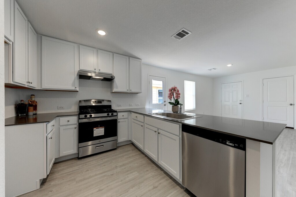 Offering the First 2 Weeks of Rent Free to those who qualify for the rental Come Home to this beautiful brand-new home built in 2024. The home is in the Steelwood Trails Subdivision. This floor plan is popular and has an attached 2 car garage. Open floor concept with vinyl plank flooring throughout all common areas, and carpeting in bedrooms. Spacious modern kitchen with quartz counter tops, and plenty of cabinets. Split floorplan with primary suite strategically placed toward the back of the home for added privacy. Nice-sized backyard with privacy fence; perfect for entertaining. Immerse yourself in the vibrant culture and exciting attractions that New Braunfels has to offer, right from the comfort of your new This home offers not only a peaceful retreat but also proximity to major employers, top-rated COMAL ISD schools, and an array of fantastic shopping and dining options. Easy access to IH-35, Easy access to major hwys, quick commute to both San Antonio and Austin. The area is served by the well-regarded Comal Independent School District with multiple parks and attractions! Grass will be installed withing the next couple weeks.