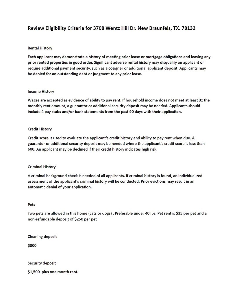 FIRST 2 WEEKS RENT FREE for qualifying tenants (This promotion ends on March 30th) Amazing new built 3 bedroom, 2 bathroom house in New Braunfels. Amenities included: central air, central heat, dishwasher, stainless steel appliance, and yard. No Utilities included. Is pet friendly. Date Available: Mar 1st 2026. $1,500/month rent. $1,500 security deposit required. Please contact Amalfi at to learn more. This property is managed by a responsible landlord using Avail landlord software.