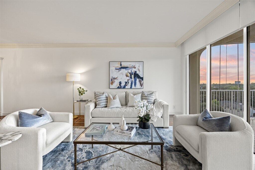 Presenting a rare offering at the esteemed Inwood Manor. This stylishly updated 7th-floor unit redefines elegant and sophisticated "lock and leave" living. The generous living and dining spaces,highlighted by elegant crown molding are ideal for entertaining,or relaxation. Floor-to-ceiling motorized window treatments provide effortless control over natural light and privacy opening to a large balcony with spectacular sunset views of the city and the extensive,manicured grounds. The primary suite serves as a luxurious retreat,featuring designer wallpaper,coordinating carpet,and a custom,bespoke walk-in closet. A versatile 2nd bedroom offers the flexibility of an office,study or den. Premium updates include designer hardware and lighting,along with newly tiled bathrooms featuring high-end faucets. In-unit stackable full-sized washer/dryer. Building amenities include: concierge/valet,party room,library,heated pool,guest suites,basement storage room & two exercise rooms. MLS# 92536365