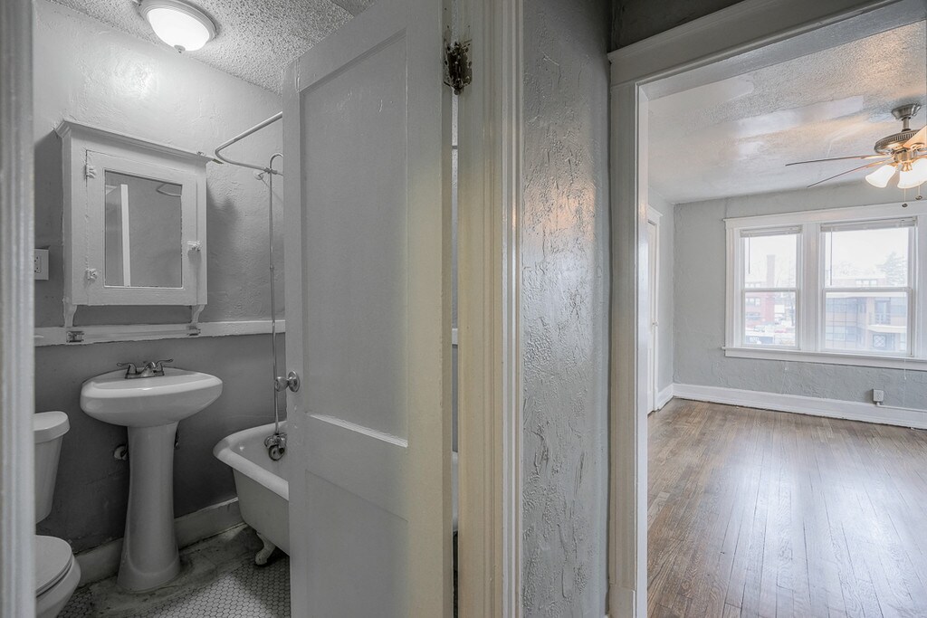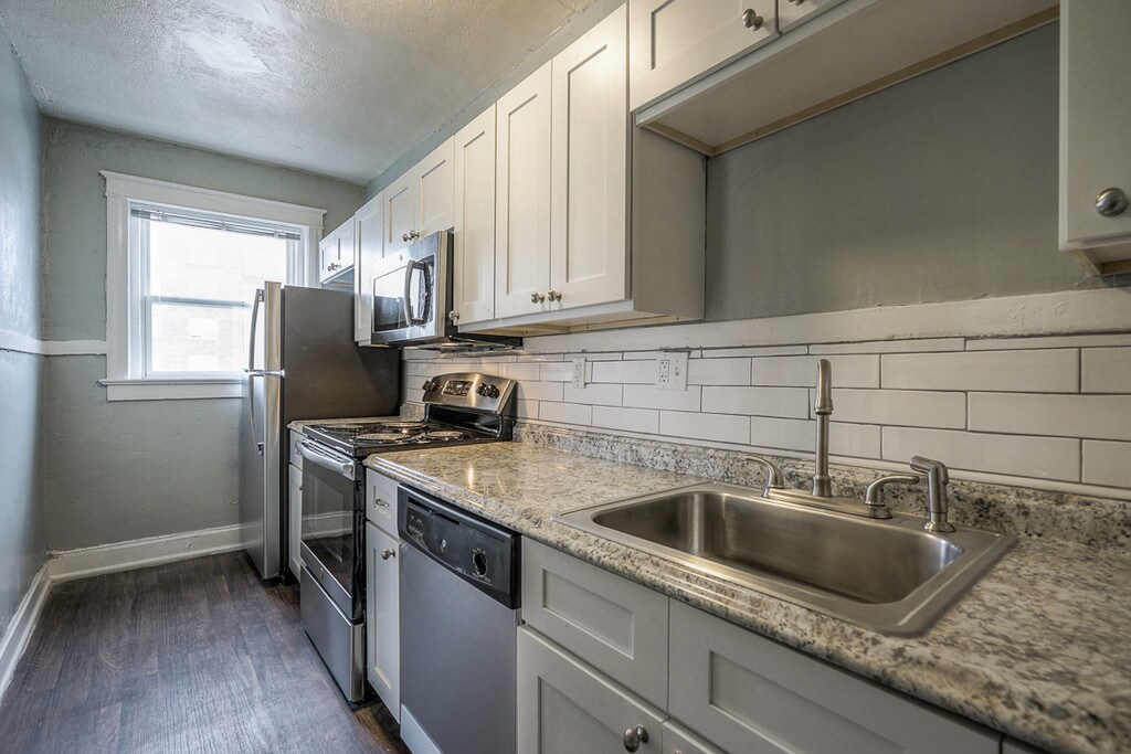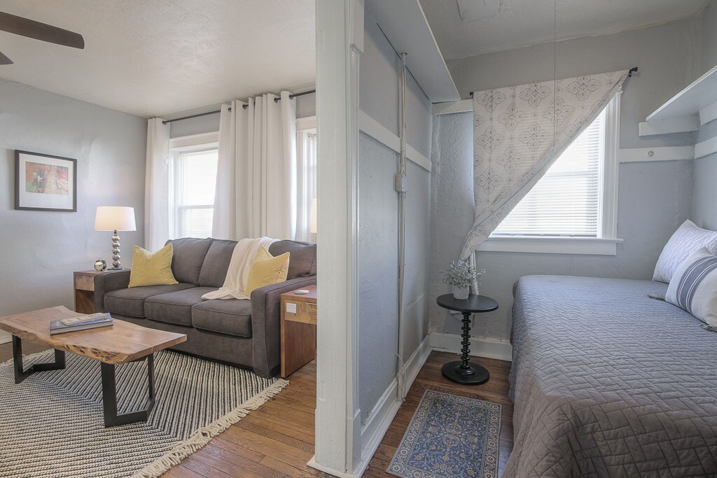 Building in Great Midtown Location close to Westport, The Plaza, Crossroads, Union Hill, Downtown, Restaurants, Shops, Transportation, Highways. UMKC, KU Med, Laundry and storage available in the basement. FREE MONTH — ASK FOR DETAILS! ALL UTILITIES ONLY $100/mo! Beautifully updated studio in a prime location! Features an amazing new kitchen with new cabinets, counters, backsplash, and stainless steel appliances including a dishwasher and microwave. Enjoy refinished hardwoods, fresh paint, updated fixtures, and plenty of closet space. Charming bathroom with a classic claw-foot tub. On-site laundry. Pets: Cats $20/mo · Dogs $25/mo · Dogs 75+ lbs $40/mo Move-In Fee: $150 admin fee due at move-in Schedule a viewing: