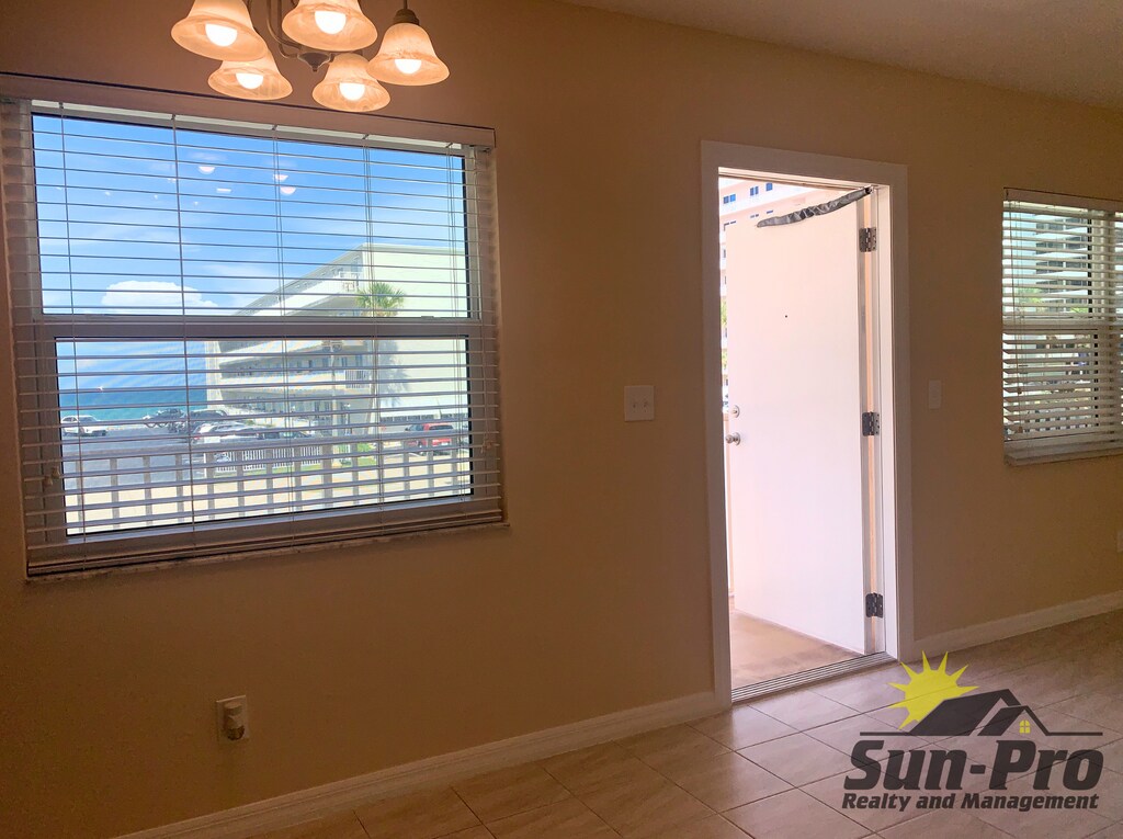 Welcome HOME!! Just one block from the sands of Daytona Beach, this charming 2-bed/1-bath apartment offers relaxed coastal living in a bright, updated space. Inside, you'll find clean tile flooring throughout, fresh paint, and brand-new appliances in the kitchen. Natural light fills the living areas and bedrooms, all cooled by modern ceiling fans for year-round comfort. Votran bus stop is directly across the street, and there are two beach access ramps just steps away making it easy to enjoy everything the area has to offer. Step outside to the shared balcony, where peaceful water views and ocean breezes create the perfect spot to unwind. With water and sewer included, onsite laundry, and an unbeatable beachside location close to shops and dining, this apartment is the ideal place to enjoy the Daytona lifestyle. Qualified applicants encouraged to apply. $75.00 nonrefundable application fee per adult due upfront. One month's rent security deposit, $150.00 administrative fee, plus first month's rent required prior to move-in. All Sun-Pro Realty and Management residents are enrolled in the Resident Benefits Package which includes renters insurance, HVAC air filter delivery (for applicable properties), credit building to help boost your credit score with timely rent payments, $1M Identity Protection, move-in concierge service making utility connection and home service setup a breeze during your move-in, our best-in-class resident rewards program, and much more! More details upon application. Call us today to schedule a self-guided tour and secure your new home!