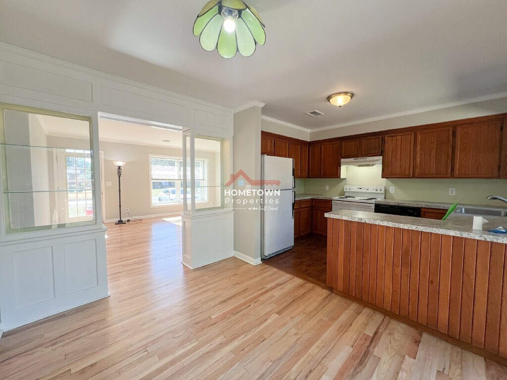 3-bedroom and 2-bathroom long-term rental home situated in a convenient location near schools,shopping centers,and restaurants. Beautiful hardwood floors throughout. The fenced backyard offers ample room for outdoor activities and gatherings. The kitchen features an electric stove/oven,dishwasher,and refrigerator. The hall bathroom is conveniently located in the main hallway and is easily accessible from all three bedrooms and has a shower/tub combo. The primary bedroom features a private full bath with a standalone shower. Pets considered: up to 2 under 35 lbs,age 1+,prior approval,third-party screening; aggressive breeds not considered. All Hometown Properties of the Gulf Coast residents are enrolled in the Resident Benefits Package (RBP). RBP is $50 per month and includes liability insurance,credit building for on-time rent,up to $1M ID theft protection,HVAC filter delivery (where applicable),resident rewards,and on-demand pest control. More details provided with application.