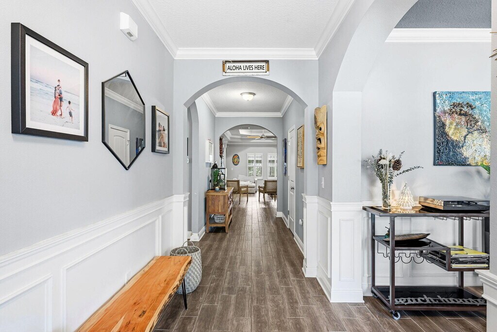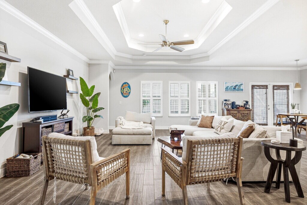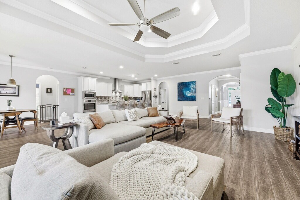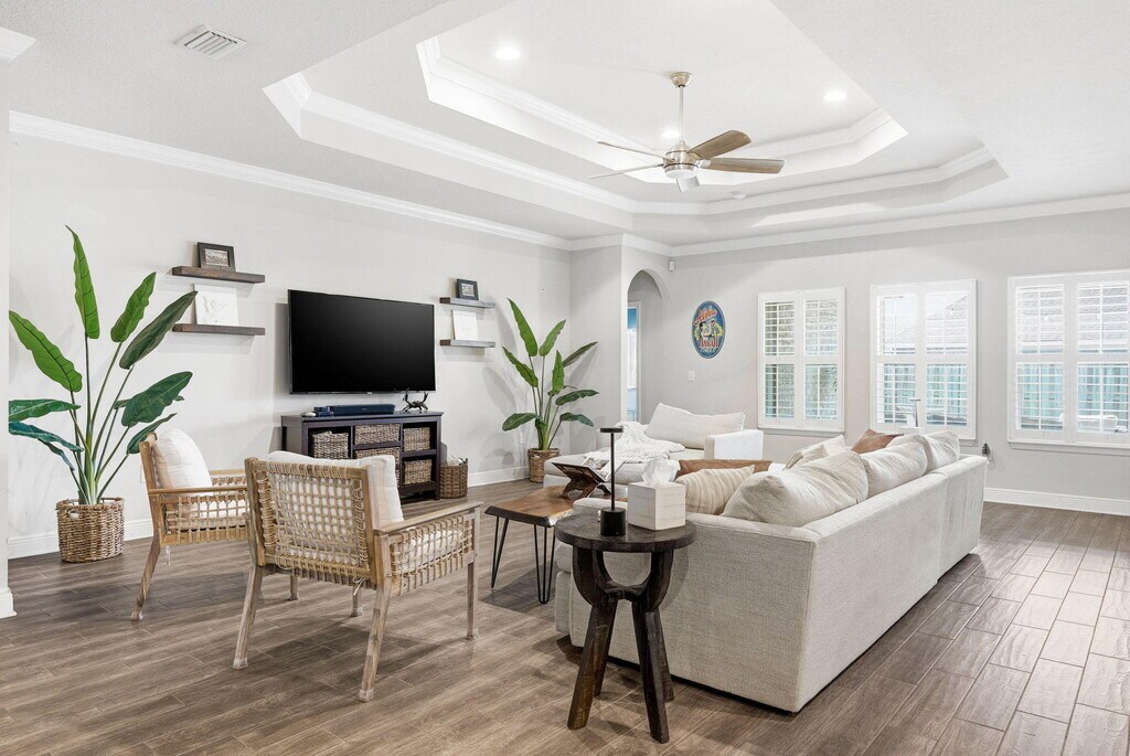 Welcome to Central Park at Hammock Bay! Are you looking for that large home with 5 bedrooms PLUS a study/bonus room, PLUS a formal dining room, large, open concept family/living/dining/kitchen area and covered porch with fenced in backyard? Here it is! Be amazed stepping in the front door with crown molding, tall ceilings (w/10' tray ceiling in dining, master and living areas), expansive living room, gourmet kitchen w/plenty of storage space, granite countertops, split floor plan with privacy in mind, three full bathrooms, and a master ensuite sure to impress. The master suite has private access to your screened in patio to enjoy the Florida weather! CableTV included! Pets allowed, restrictions apply. If approved, $25/mo pet rent and a non-refundable pet fee of $250 will apply. A one-time $100 lease admin fee applies. Welcome to Hammock Bay! Hammock Bay features four community pools, 24/7/365 fitness centers (3), dog parks, walking paths, pier w/clubhouse, tennis, disc golf,...