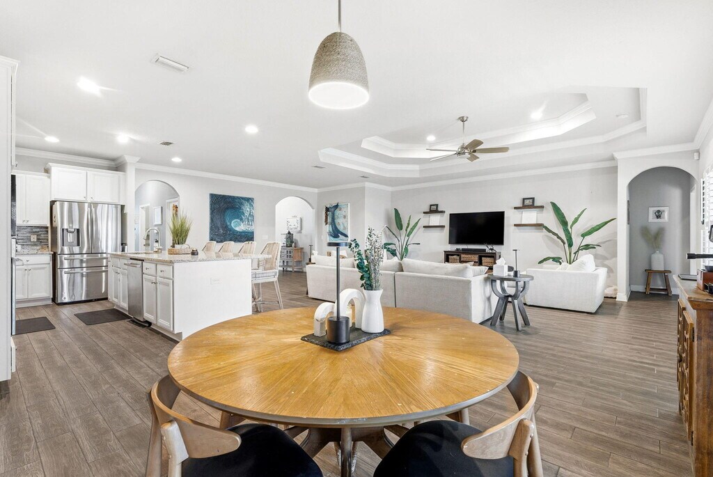 Welcome to Central Park at Hammock Bay! Are you looking for that large home with 5 bedrooms PLUS a study/bonus room, PLUS a formal dining room, large, open concept family/living/dining/kitchen area and covered porch with fenced in backyard? Here it is! Be amazed stepping in the front door with crown molding, tall ceilings (w/10' tray ceiling in dining, master and living areas), expansive living room, gourmet kitchen w/plenty of storage space, granite countertops, split floor plan with privacy in mind, three full bathrooms, and a master ensuite sure to impress. The master suite has private access to your screened in patio to enjoy the Florida weather! CableTV included! Pets allowed, restrictions apply. If approved, $25/mo pet rent and a non-refundable pet fee of $250 will apply.