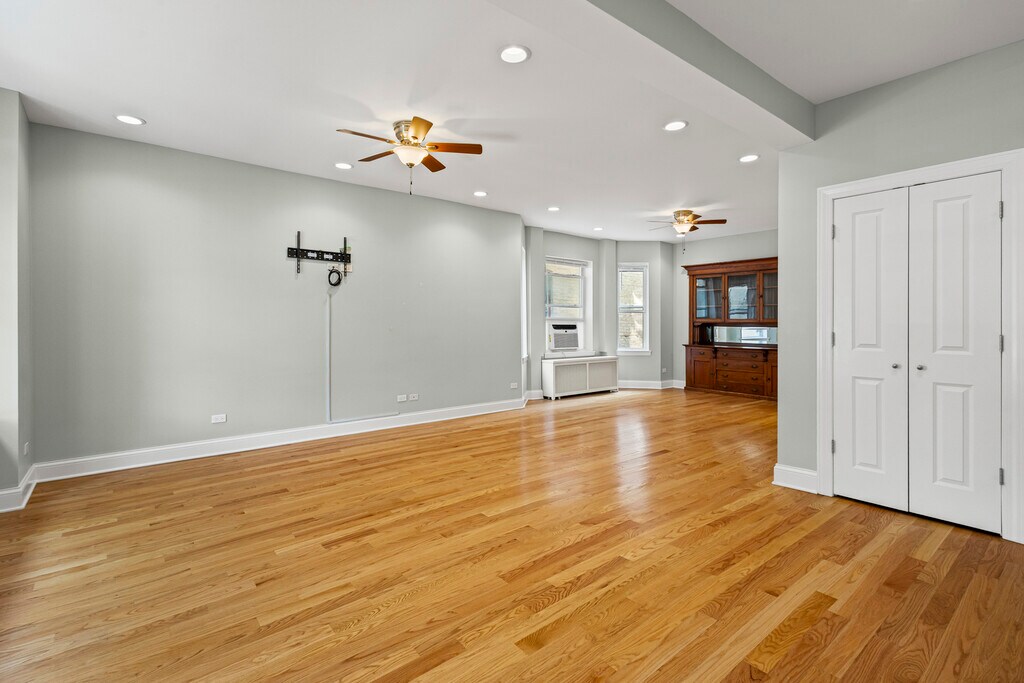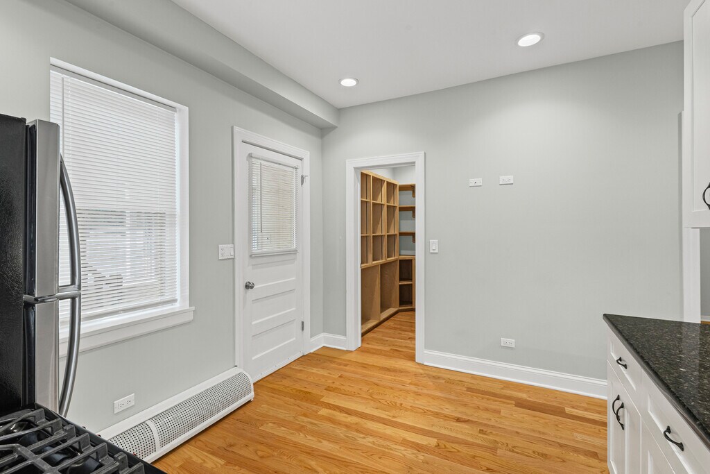 Welcome to this beautifully renovated 2 bed/1 bath, 1st floor unit in highly sought-after Independence Park. Step inside to be greeted by stunning hardwood floors that flow seamlessly throughout, and enjoy abundant natural light from the living and dining room. The unit boasts high ceilings and can lighting. The dining room has the original built-in hutch adding vintage charm. The two bedrooms are of generous size with ample closet space. Classically updated bathroom. The kitchen has 42" white shaker cabinets, granite countertops, stainless steel refrigerator, stove, range-hood and a walk-in pantry with custom built-ins. Bonus room ideal for office, exercise or reading nook. Downstairs you will find a washer and dryer on premises for you to use at no additional cost and a large storage room. The backyard is lovely and for you to enjoy the outdoors! Fantastic location-walking distance to the Blue Line, Metra, and CTA, with quick access to I90/94 and surrounded by great dining and neighborhood amenities. Don't miss this opportunity to live in one of the North Side's most charming and connected neighborhoods!