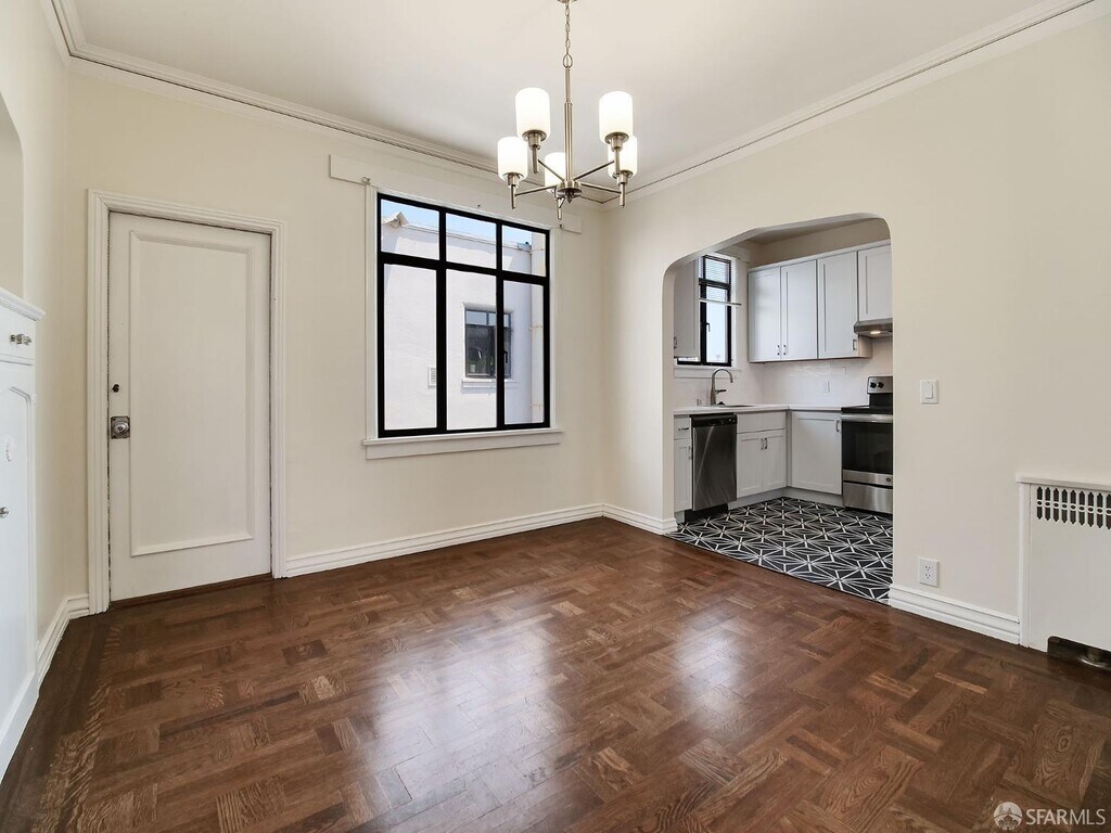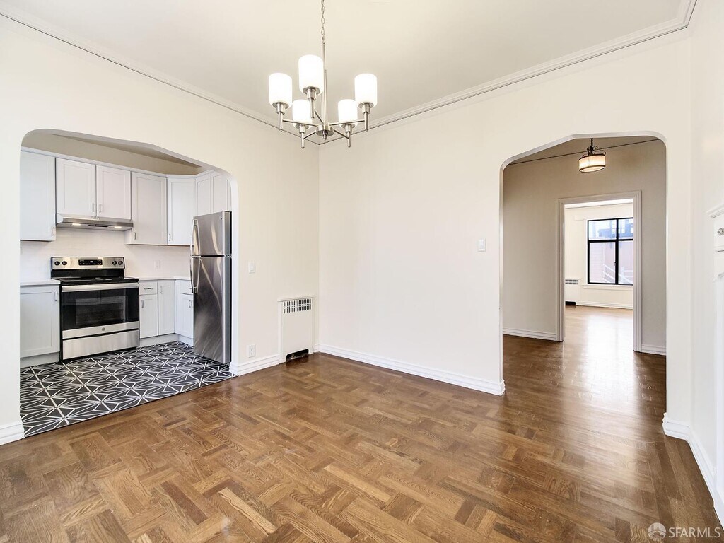 Nestled within the highly sought-after Marina district, this spacious 1-bedroom, 1-bathroom apartment resides in an impeccably maintained Art Deco building, exuding timeless charm at every turn. With a generous 1,080 square feet of living space, this residence boasts classic features including picture moldings, arched doorways, and gleaming hardwood floors throughout. Upon entering, you're greeted by a formal foyer leading into an expansive living area complemented by a substantial walk-in storage closet. The sizable bedroom offers ample space for relaxation, while the vintage-inspired bathroom features a walk-in shower and soak tub for added convenience. A designated dining area seamlessly flows into the kitchen, equipped with brand new appliances including a refrigerator, stove top, and dishwasher. Elevating the living experience, this elevator-serviced building presents a beautifully appointed lobby, welcoming you home with style and sophistication. Ideally situated on a prime block, residents enjoy proximity to the Yacht Harbor, Safeway, Starbucks, and the picturesque Marina Green. The vibrant dining, shopping, and entertainment offerings of Chestnut Street are just moments away, while the renowned St. Francisco and Golden Gate Yacht Clubs cater to sailing enthusiasts.