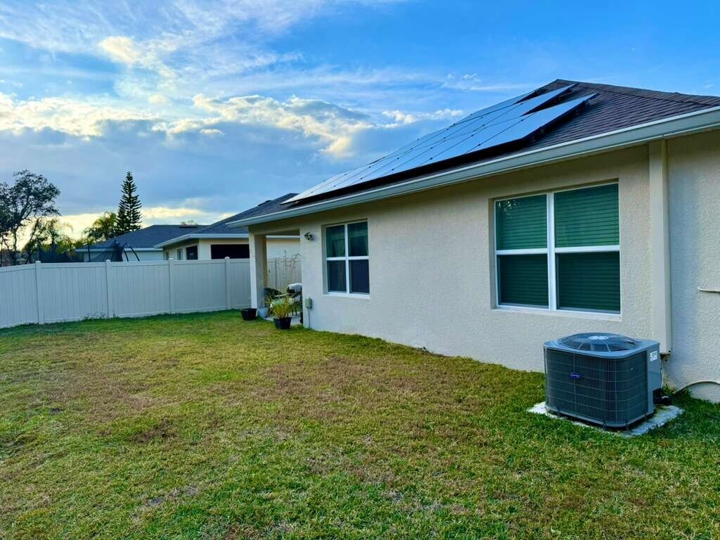 Beautiful 4 bedroom, 2 bathroom home in Sanford with modern upgrades and energy-efficient features. Enjoy an open concept layout, stainless steel appliances, and a spacious kitchen ideal for entertaining. Home includes solar panels + battery system to help reduce electric costs if any based on usage, keep your house energized during any possible power outages during storm season, plus a brand-new 2025 smart hybrid water heater designed for energy savings and improved comfort (including helping cool the garage during hot months). Relax in a fully fenced backyard with no rear neighbors, backing up to peaceful conservation for added privacy. Property also includes a whole-house water filtration system for cleaner water throughout the home. Conveniently located near shopping, dining, major highways, and Orlando Sanford International Airport. Large dogs welcome with no breed restrictions (case-by-case). Available July 1, 2026 (late June move-in may be considered contingent on closing).