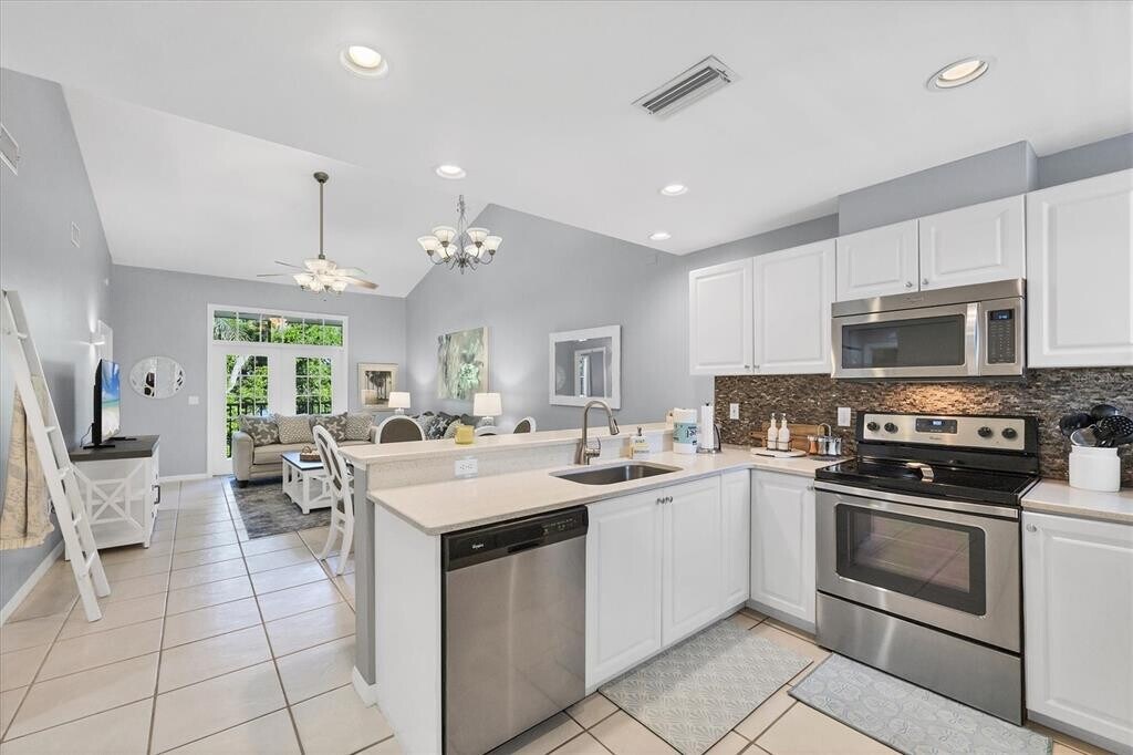 Delightful,well-appointed 2BR/2BA second floor villa with cathedral volume ceilings and lake views. This unit is located on a highly desirable cul-de-sac on the IMG Academy gated campus and world famous sports training facilities. Newly Furnished villa is in turnkey condition,sparkling clean and freshly painted for move-in convenience. Property features spacious rooms,Corian kitchen countertops,ceiling fans throughout,floor-tiled,secluded screened lanai offering lake views. This villas features stove w/ microwave vent,disposal,washer & dryer. Rate includes electric,water,sewer,garbage,pest control,and basic cable. Gated community,within a short distance to community pool and spa,fitness center,and IMG facilities. Villa owners reserve the right to increase the rent for shorter term leases. pets allowed. MLS# A4686840