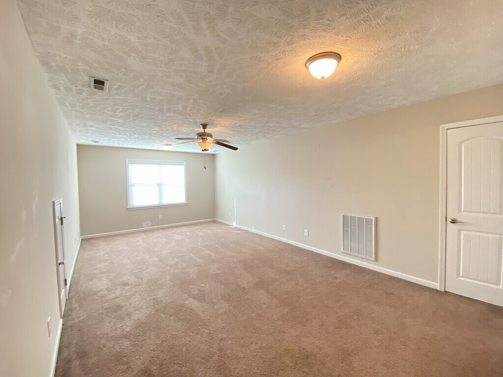3 Bedroom + Bonus room home located in ESTATES OF CAMDEN in Fayetteville NC. When you step into the foyer of this two story home you will find wood flooring and high ceilings. To the left is the formal dining room with large windows to let in lots of light. Downstairs you will also find, a living room with gas log fireplace and access to the rear covered porch. A kitchen with lots of granite countertops, 42 kitchen cabinets, Laundry room, pantry, breakfast bar, and nook and half bathroom. The owners suite is also downstairs and features a walk in closet, garden tub, shower, double sink vanity and private potty room. Home has natural gas for fireplace and water heater. Upstairs you will find 2 bedrooms a full bathroom and bonus room with storage. Double car garage, rear fence, natural gas water heater. Pets upon prior approval and non refundable pet fee."