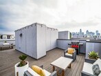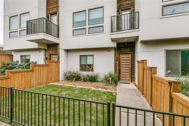 Gorgeous modern condo with an expansive rooftop terrace overlooking downtown Dallas, featuring ultra-efficient energy features... perfect for entertaining. This condo sets itself apart with an individual, gated front yard and a gated entry. This stunning condo features an oversized garage, a chef's kitchen with stainless steel appliances, and two bedrooms plus 2.5 baths. The living area on the second floor has eleven-foot ceilings, expansive windows, waterfall quartz countertops, and designer lighting fixtures. The master suite features Carrara marble, a soaking tub, a separate shower, and an expansive closet. If you are looking for a low-maintenance, energy-efficient home within a mile of the renowned Dallas Arts District and West Village, this is your place. The condo has a bonus for a small office or workout