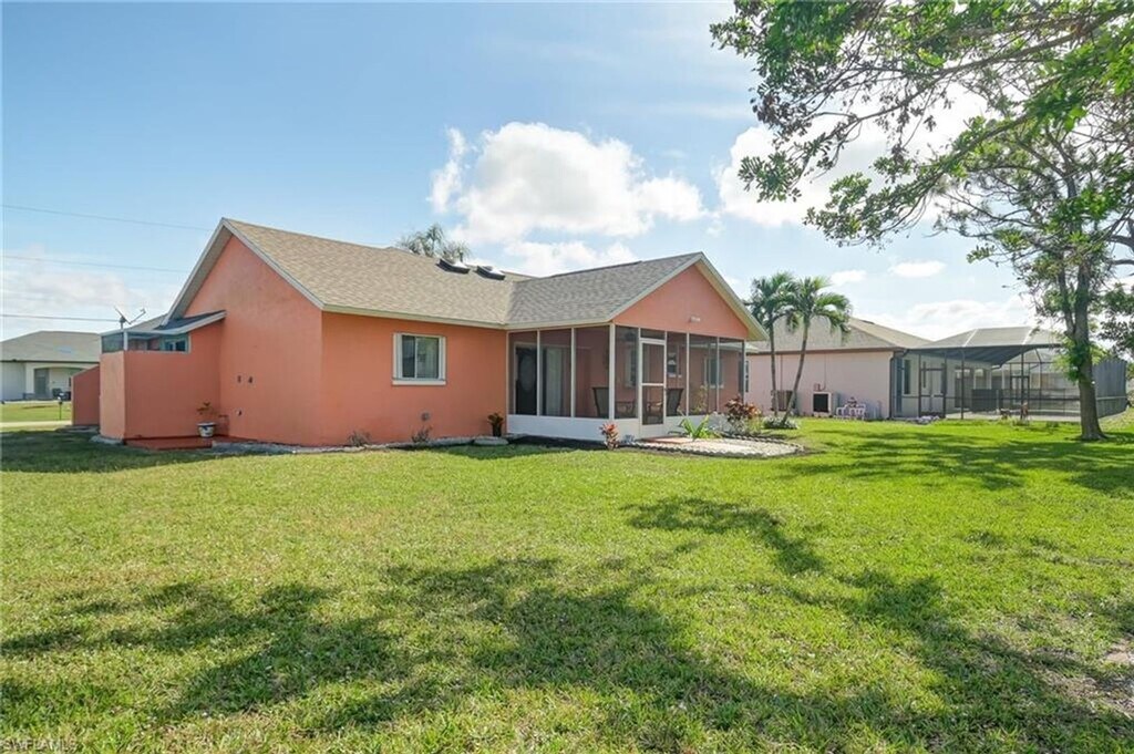 SW area Cape Coral Home,offers 1148 sq ft under area. Spacious kitchen with plenty of cabinets including a pantry. This home is fully tiled with vaulted ceiling in the living area with great natural light from the skylights. Split bedroom plan and large screened in lanai. Close to the library local restaurants.