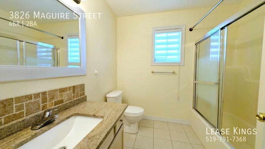 3826 MAGUIRE STREET 3 + 1 Bedrooms and 2 Baths $2600.00 + Utilities Per Month CHEF'S KITCHEN WITH STAINLESS STEEL APPLIANCES & GRANITE COUNTERS / NO CARPET / GARAGE / DECK WITH PATIO Welcome to this well maintained raised ranch home offering 3 + 1 bedrooms and 2 full baths sitting on a prime location in South Windsor. Close to the best schools and shopping with easy access to your everyday amenities. Upper level features a bright and updated kitchen with dark wood cabinets, granite counters and appliances (fridge/stove/dishwasher) and moveable island. Garden door to deck and lower patio. Large dining and great room space to gather with huge front facing windows for natural light. Three spacious bedrooms with double closets and main floor 4 piece bath. Lower level is finished with recreation room, bonus space for 4th bedroom or office, storage and laundry room. Neutral painted walls, window treatments, hardwood and tile floors throughout.. Energy efficient gas forced furnace and central air units. Single garage, side drive and tranquil backyard for outdoor enjoyment. We will need 24 hours notice to schedule all showings. Won't last long!